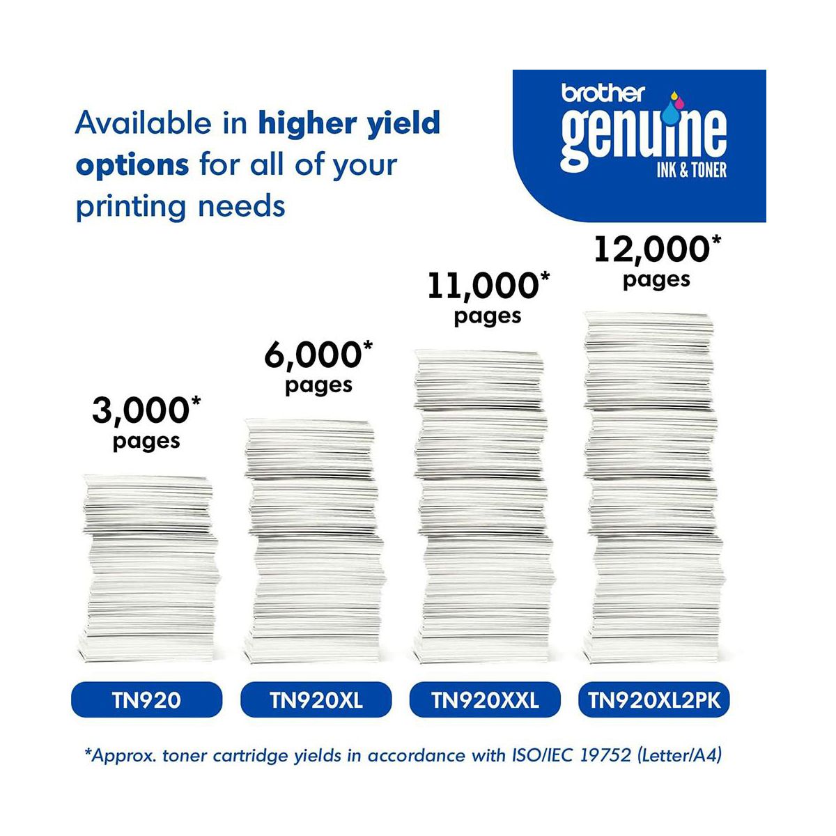 • Includes 2 genuine Brother TN920XL high-yield black toner cartridges