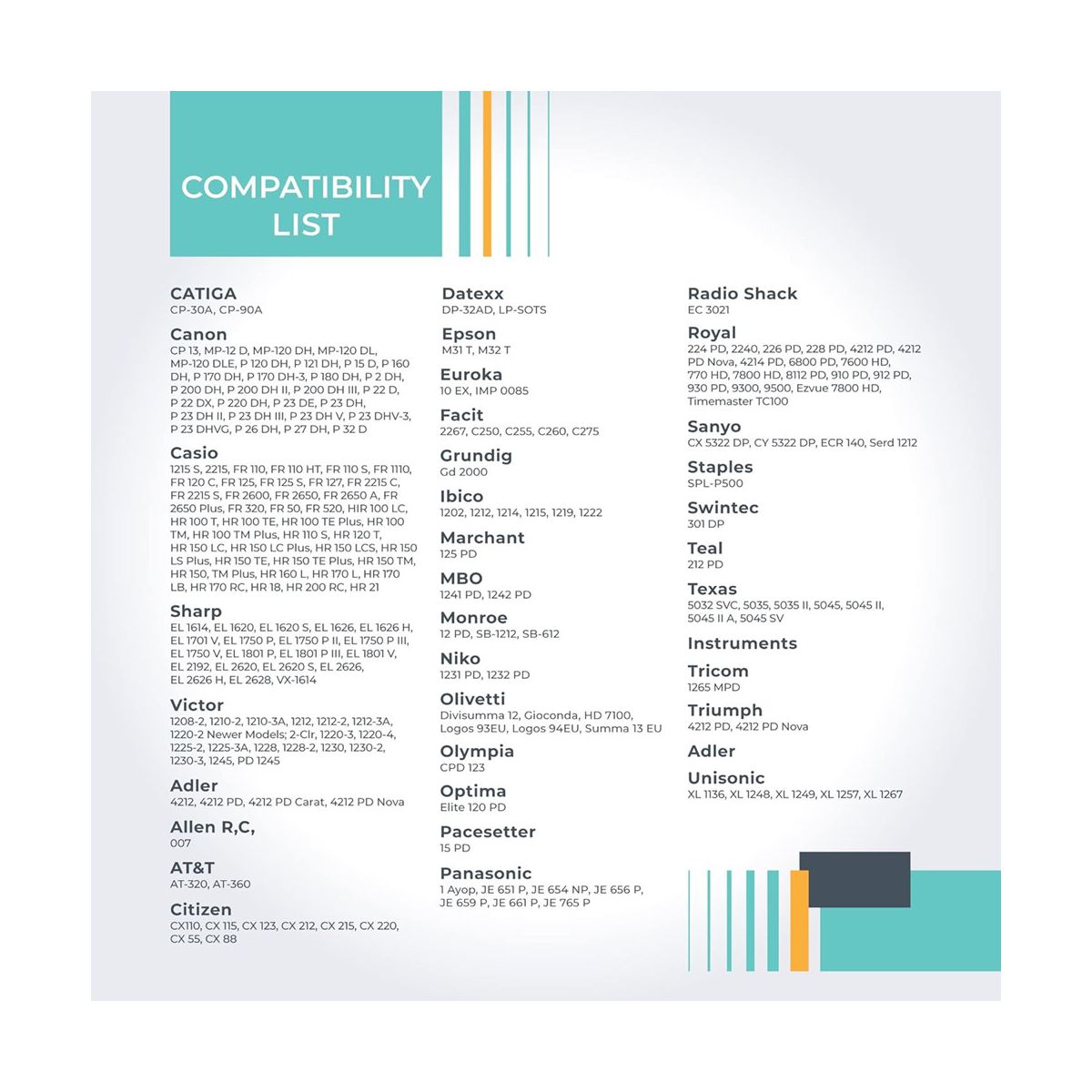Used with Casio HR-100TM HR-150TM HR-170RC, Sharp EL-1750V EL-1801V, CATIGA CP30A CP90A. Easily replace your ink cartridge when your print is fading. Bold and concise, this ink cartridge features bright red and dark black ink. Use this cartridge to replace any CASIO, SHARP, or CATIGA calculators that use the IR-40T cartridge.