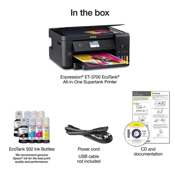 Epson Expression ET-3700 EcoTank Wireless Color All-in-One Supertank Printer with Scanner, Copier and Ethernet