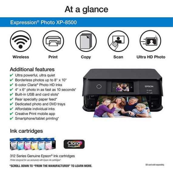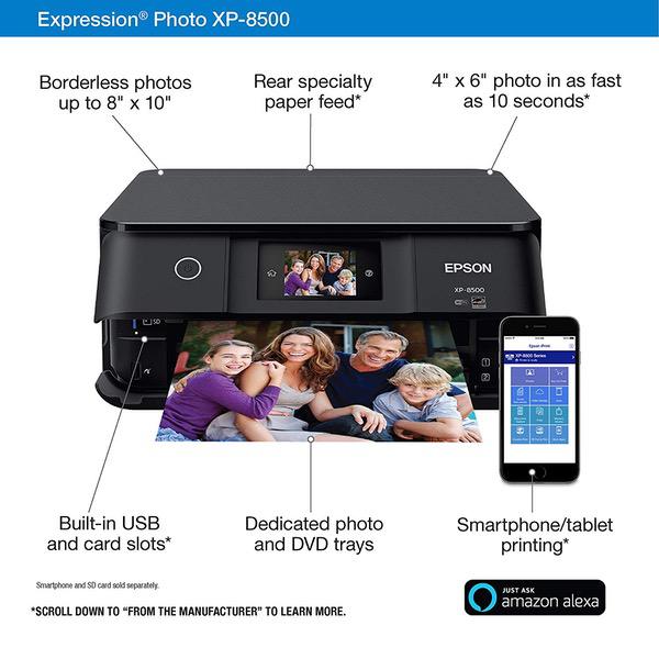 Epson Expression Photo XP-8500 Wireless Color Photo Printer with Scanner and Copier, Amazon Dash Replenishment Enabled with T312120 Claria Photo HD Black Cartridge Ink