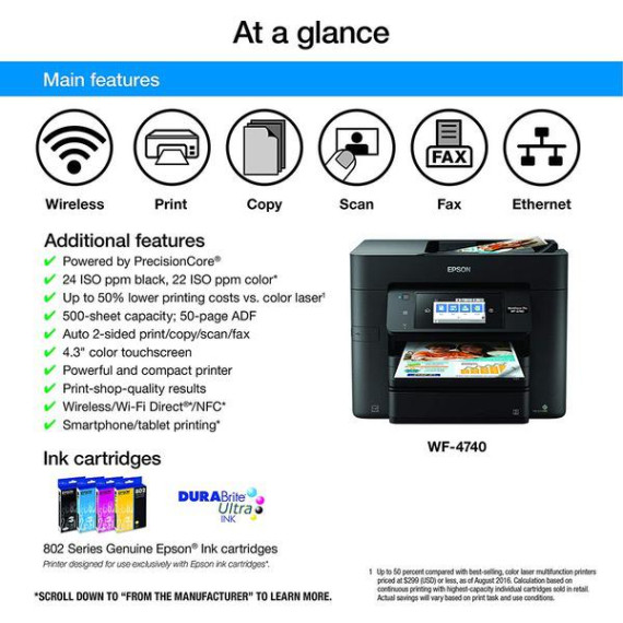 Epson WorkForce Pro WF-4740 Wireless All-in-One Color Inkjet Printer, Copier, Scanner with Wi-Fi Direct with Ultra Black Cartridge Ink and Ultra Color Combo Pack Cartridge Ink