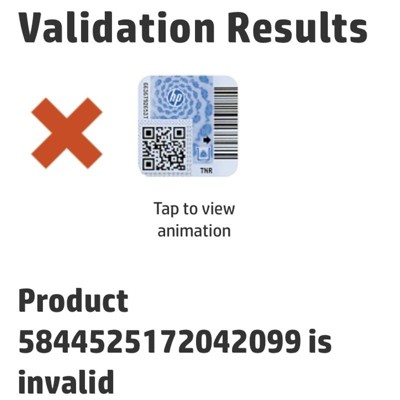 Was sold counterfeit ink cartridges, confirmed they are invalid by entering in label security number on HP’s website. Purchased three cartridges and cannot return.