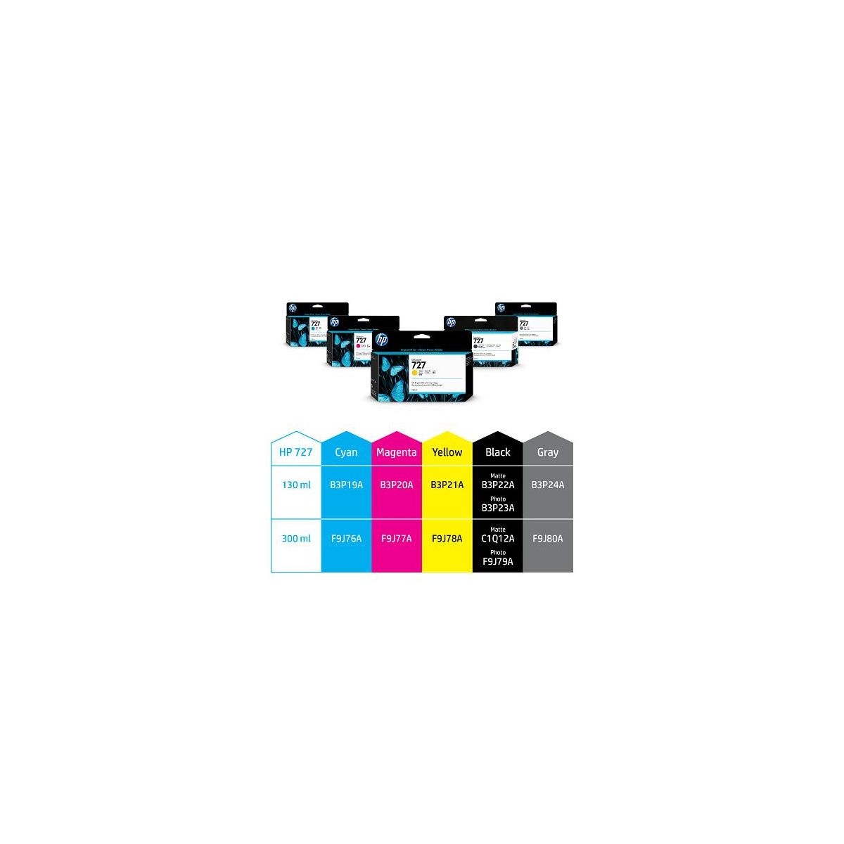 Overview - It's easy to get crisp, clear results. Designed together with your HP DesignJet printer as an optimized printing system, Original HP inks can help reduce downtime and improve productivity. Fast-drying, smudge-resistant prints help you keep pace. - Ideal for design and engineering teams producing high-quality, professional drawings. - It's easy to get crisp, clear results. Designed together with your HP DesignJet printer as an optimized printing system, Original HP inks can help reduce downtime and improve productivity. Fast-drying, smudge-resistant prints help you keep pace. Features Produce high-quality, professional drawings - Present your professional best with the accurate, professional prints produced by Original HP inks. Help reduce downtime and improve productivity - See accurate, professional results, print after print, cartridge after cartridge with Original HP inks. Easy-to-use cartridges fit the way you work - High-capacity 300-ml ink cartridges enable more unattended printing. Disclaimers - Comparing 300-ml HP 727 DesignJet Ink Cartridges to 130-ml HP 727 DesignJet Ink Cartridges. - Visit http://www.hp.com/recycle to see how to participate and for HP Planet Partners program availability; program may not be available in your area. Where this program is not available, consult the Material Safety Data Sheet (MSDS) available at http://www.hp.com/go/ecodata to determine appropriate disposal. - True neutral grays produced by printers compatible with the HP Three-black ink set.