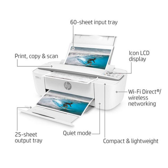 HP DeskJet 3755 Compact All-in-One Wireless Printer, HP Instant Ink & Amazon Dash Replenishment ready - Blue Accent (J9V90A)