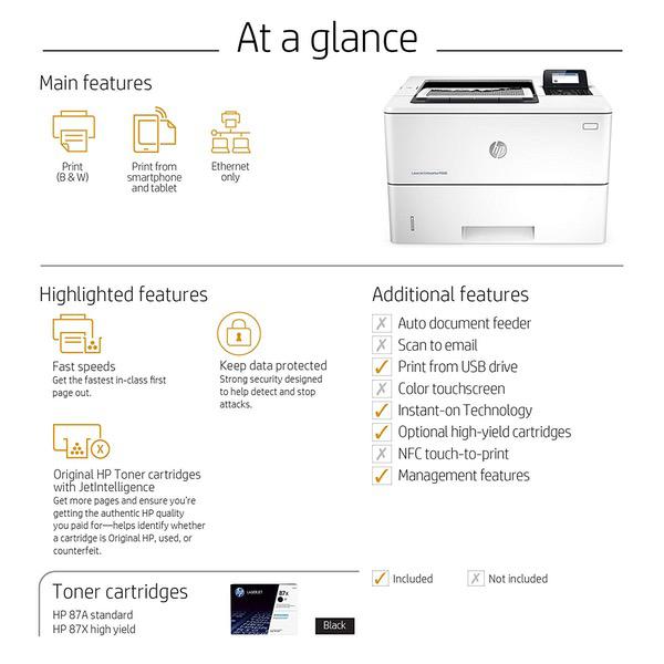 HP LaserJet Enterprise M506dn Laser Printer with Built-in Ethernet & Duplex Printing (F2A69A)