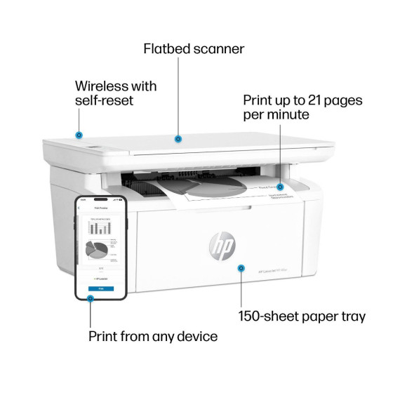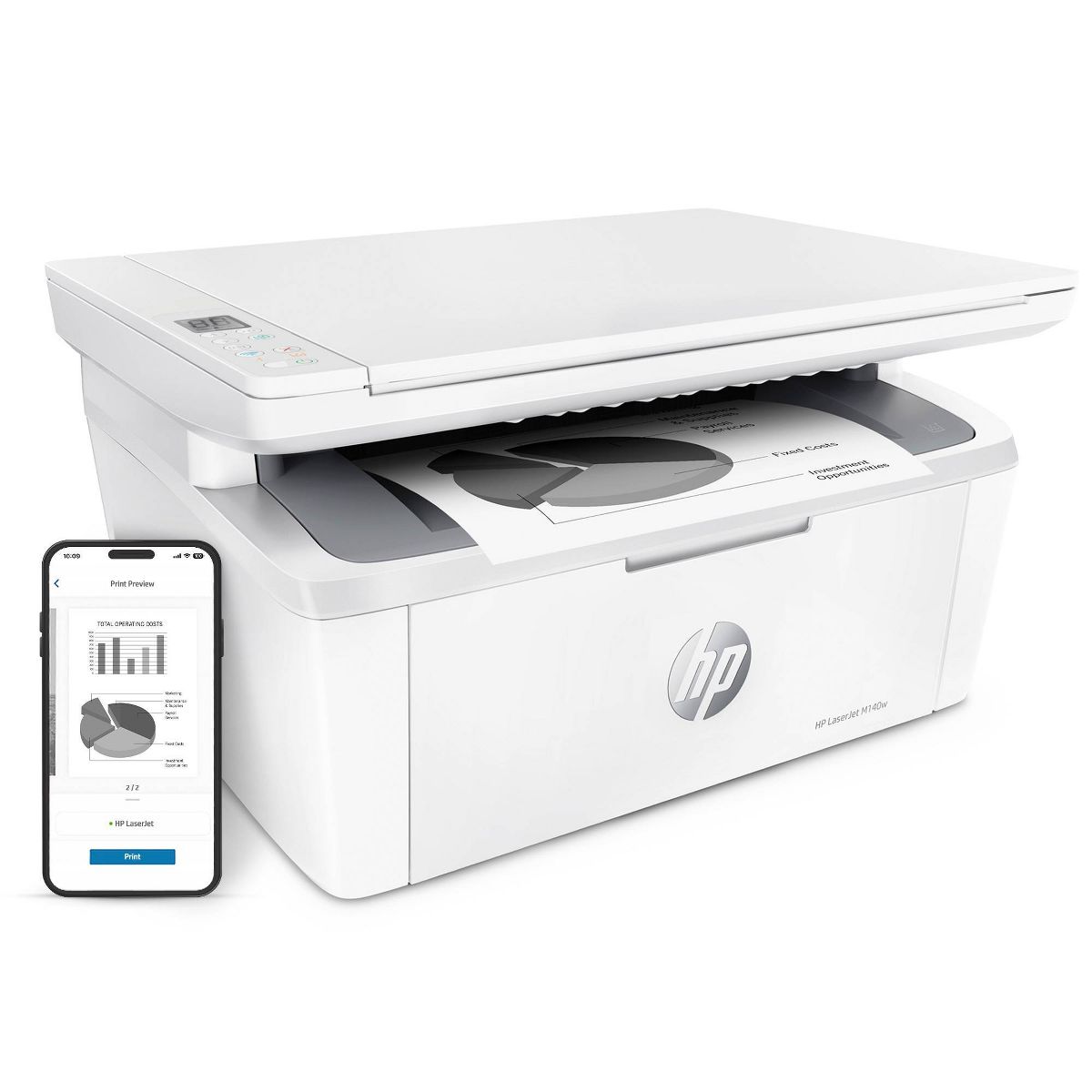 The world's smallest multifunction laser printer in its class, the HP LaserJet MFP M140w is perfect for printing black & white forms and documents, plus scan/copy. It offers high-speed printing, seamless setup and reliable connectivity.