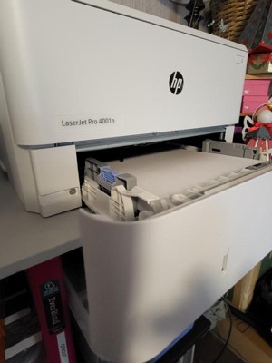 The HP LaserJet Pro 4001dn printer has truly transformed my home office setup. Its compact design fits most spaces without occupying too much space, and getting it up and running was incredibly simple—just plug it in and start printing. I wish it was Wi Fi instead of ethernet. I was particularly impressed by its speed; it handles document printing swiftly and efficiently, which is crucial for my daily tasks. The print quality is exceptional, delivering sharp text and vibrant graphics that give every page a professional finish. One of its standout features is its reliability; despite frequent use, I haven't encountered any jams or technical glitches. The duplex printing capability is a real asset, effortlessly saving paper and time. Moreover, it operates quietly, making it ideal for late-night work without causing disruptions. In conclusion, 4001dn is an excellent choice for anyone seeking a dependable, fast, and high-quality printer for home or small office use. I highly recommend it!