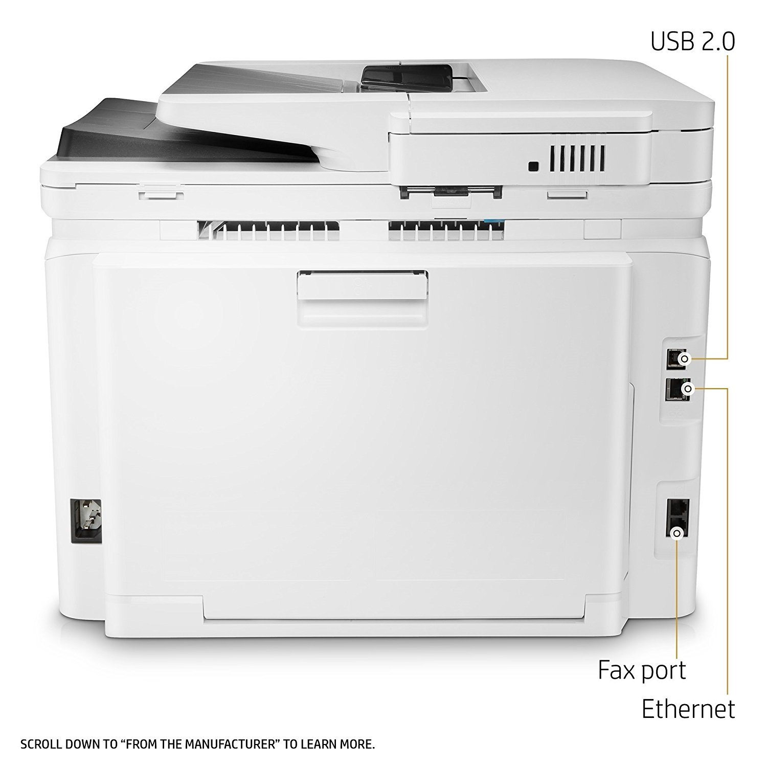 Strong Recommendation I find this printer to be a perfect fit a small business or home office. I have experience with many inkjet and laser printers including Brother, Canon, and Samsung and I have to say that this one really right in the Goldilocks zone of price vs performance. Here is my review: Size: The footprint on this printer is comparable to most 3 in 1 inkjets, but it is taller. This is not a hulking piece of equipment. It’s very compact. Setup: I did the initial setup on a MacBook Pro and it was simple and complete in under 10 minutes. I setup the scan to network folder on the MacBook Pro without a hitch. I also setup multiple email accounts for the scan to email function. It’s all very easy. Printing: This color laser printer prints absolutely stunning quality color pages and the speed is amazing when compared to inkjet technology. The colors are more vivid than other color laser printers that I’ve used in large offices before. The duplex printing is pretty quick and seamless. At 22ppm this printer is blazing fast for a printer in this class. Scanning: The 50 page document feeder is pretty quick and I haven’t jammed it yet despite fully loading it numerous times. This is huge for me as I do a lot of scanning for my job and it hasn’t failed me yet. You can control the scanning from the front panel of the printer or from the client software and both are fully functional (file type, quality, etc) Network Clients: I have printed and scanned from a MacBook Pro OS X 10.6, a PC Windows 10, and an iPhone iOS 10 without any problems at all. The most interesting of that list is the fact that the iPhone can print to the printer without loading any extra application. It can just discover the printer and print. There is also an application that you can download to scan and control the printer from your phone if you like, but you don’t need it to print from your iPhone. Copying: It fully functions as a high quality copier. Note that the color options are initially set on High Quality so you may choose to reduce quality depending on your needs for the print job. Fax: Plug in the phone line, use the console menu to set the fax header, date, time and you are in business. Toner: This printer incorporates HPs JetIntelligence technology that apparently has 53% less energy consumption, 40% less energy consumption, and 33% more pages than competitors. So, while the toner cartridges are expensive, hopefully your per page cost might still work out to be pretty good. I haven’t had the printer long enough to do that analysis. Overall, I strongly recommend this printer for any small business or home office that is search of a color printer.