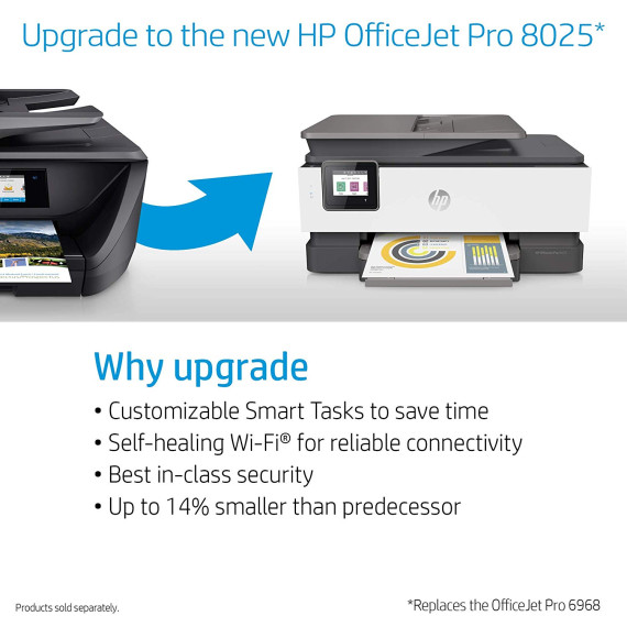 Make sure this fits by entering your model number. Print up to 2.5x more pages and replace cartridges less often, using original HP high-yield ink cartridges. Main functions of this HP color inkjet photo printer: copy, scan, fax, wireless printing, two-sided duplex printing and scanning, color touchscreen, automatic document feeder, Instant Ink ready so you'll never run out of ink, and more Set your business apart with original HP ink that delivers results you can rely on. Easily print when and where you need to from your smartphone, tablet, or notebook PC. Get convenient mobile printing options and mobile setup. Connect the way you want to with Ethernet and wireless networking HP OfficeJet Pro 6978 is ideal for the home office or small workgroups that need professional-quality, affordable color with powerful productivity and fast functionality Original HP Cartridge Yield (approx.): ~825 pages Black, ~825 pages Cyan, ~825 pages Magenta, ~825 pages Yellow