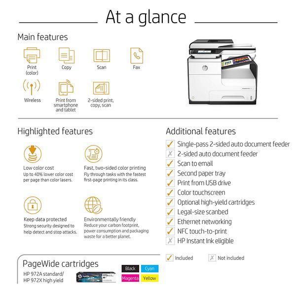 HP PageWide Pro Color Multifunction Business Printer with Wireless & Duplex Printing with HP 972X Black High Yield Original PageWide Cartridge for HP PageWide Pro