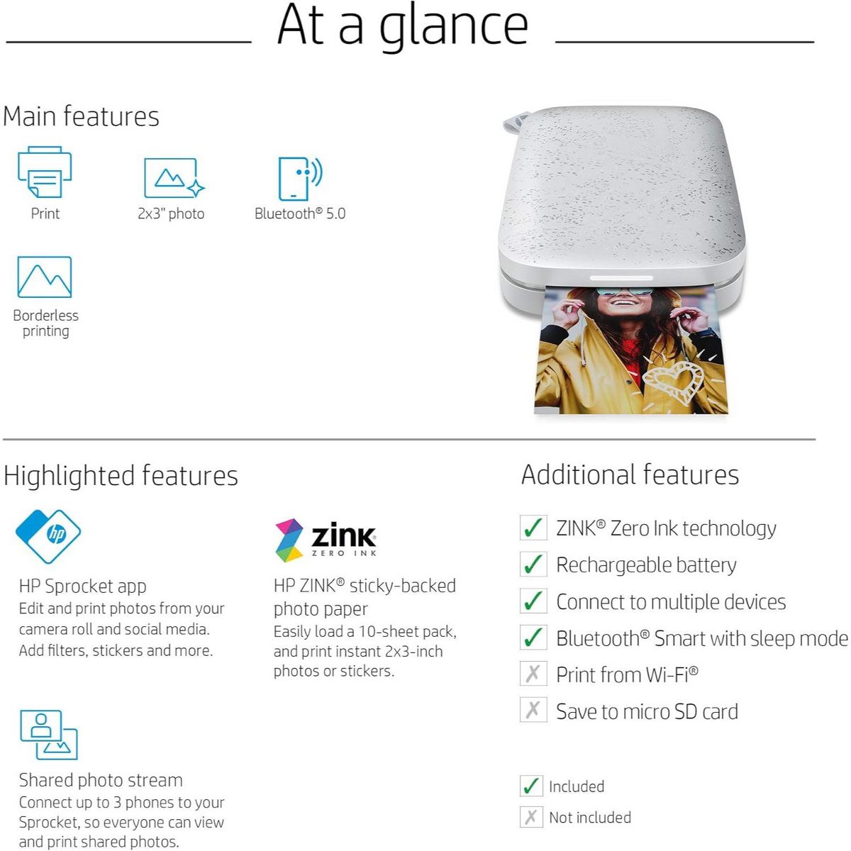 Turn your moments into lasting memories with the HP Sprocket Instant Print Camera. This compact portable printer instantly produces 2"x3" photos on ZINK photo paper with Zero Ink technology, eliminating the need for messy ink cartridges or toners. The mini photo printer bundle includes 75 sheets of photo printer paper, perfect for journaling, scrapbooks, and quick prints on the go. The photo sticker paper adds a fun twist, letting you easily create custom stickers for your photos.