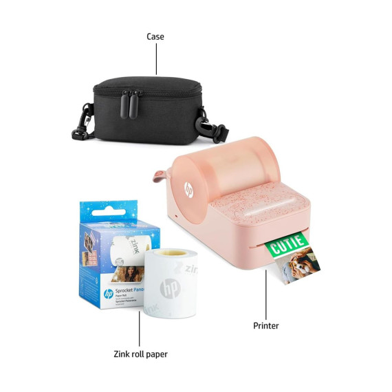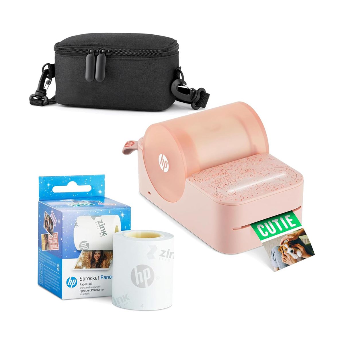 HP Sprocket Panorama Instant Label Printer & Photo Printer Starter Bundle - Pink