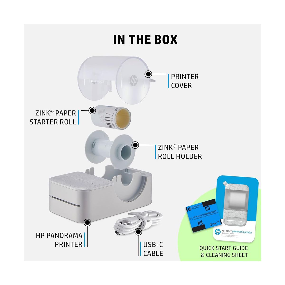 HP Sprocket Panorama Portable, Instant Label Printer & Photo Printer 2” x .5”- 9” - Gray