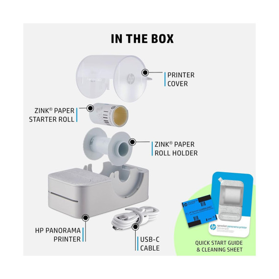 This HP portable printer lets you instantly print your favorite photo projects, labels, photobooth strips, and more, from 0.5” to 9” long on 2” wide sticky-backed paper! Take the mini photo printer anywhere for fun, on-the-go creativity. With the compatible HP Sprocket Photo Printer Panorama app, you can easily customize your creations with filters, and more before printing from your iOS or Android.