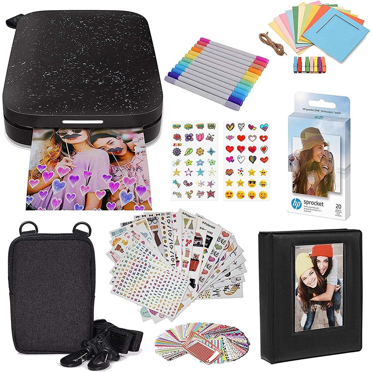 HP Sprocket Portable 2x3 Instant Photo Printer (Black Noir), Photo Paper & Accesories Starter Bundle