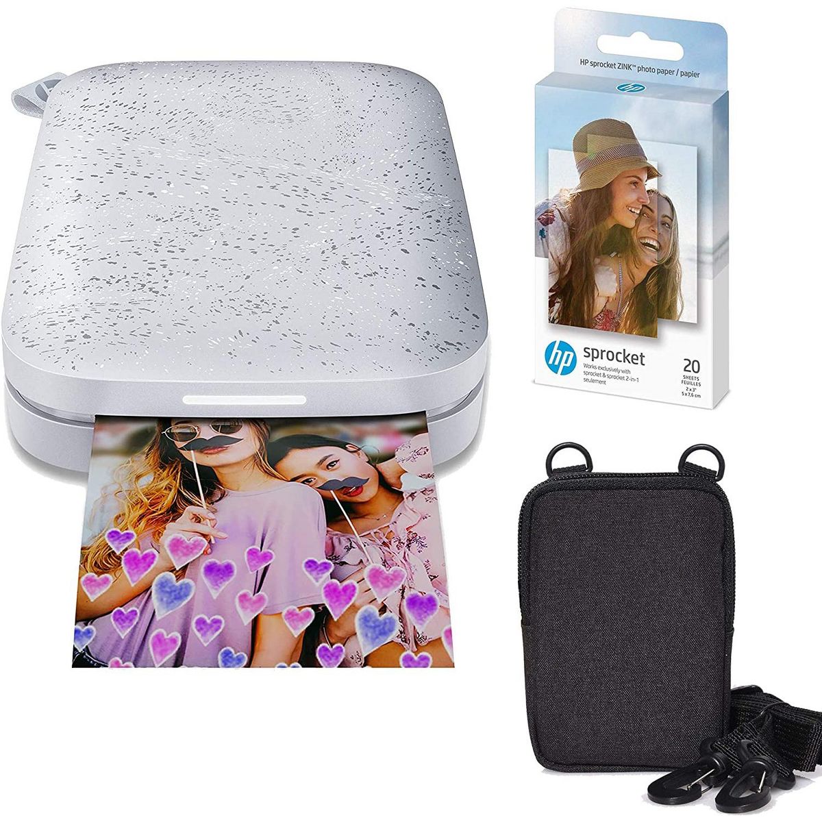 HP Sprocket Portable 2x3" Instant Photo Printer (Luna Pearl) and Zink Photo Paper Bundle