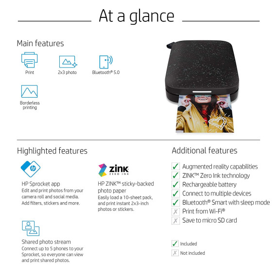 Make sure this fits by entering your model number. INSTANT PHOTOS ON THE GO – Easily print your favorite adventures on 2x3" sticky-backed photo paper with this luna pearl smartphone-sized photo printer that's designed to easily slip into your pocket, purse, or backpack Sticker photo paper for use with HP Sprocket Portable Photo Printer