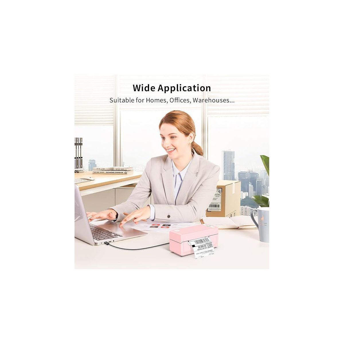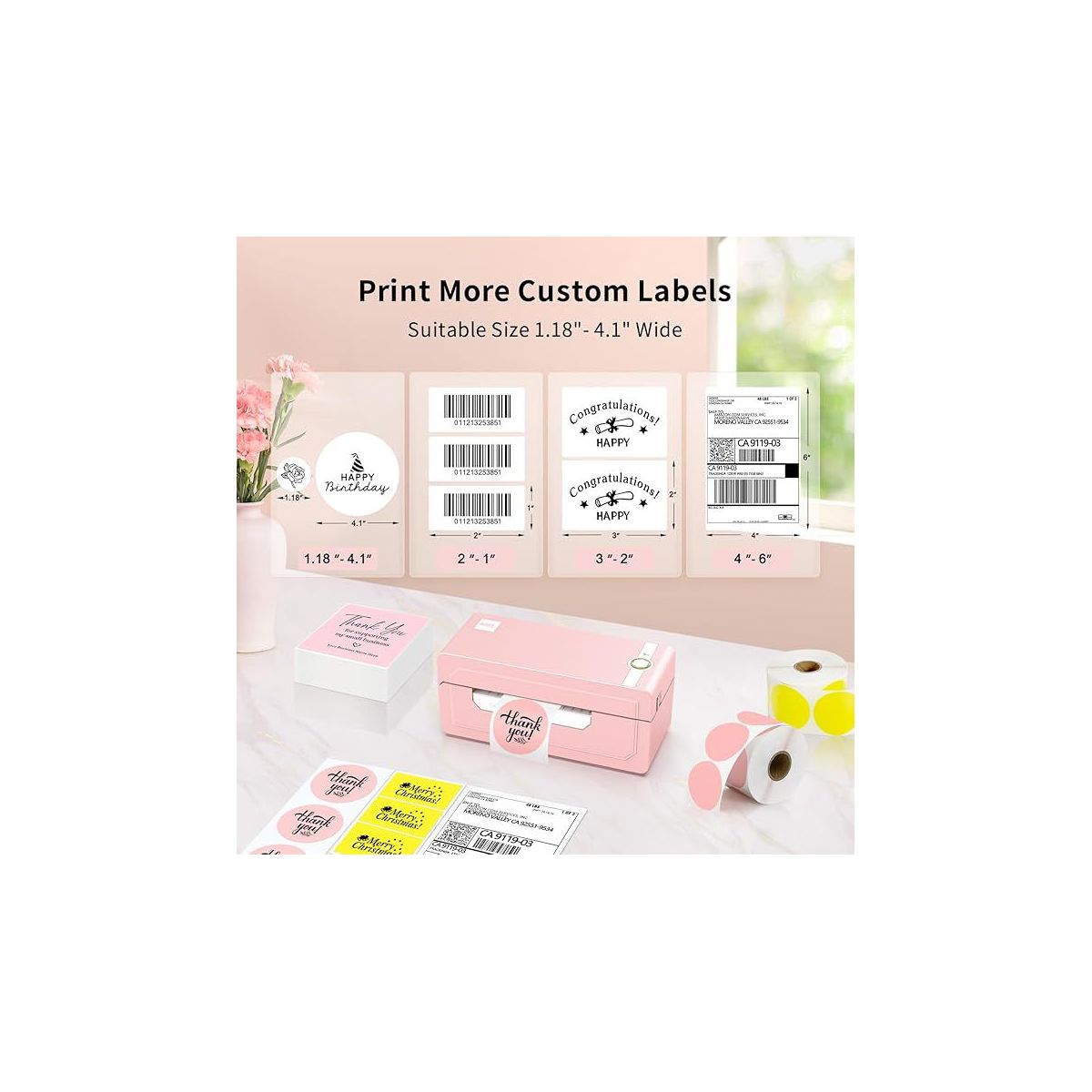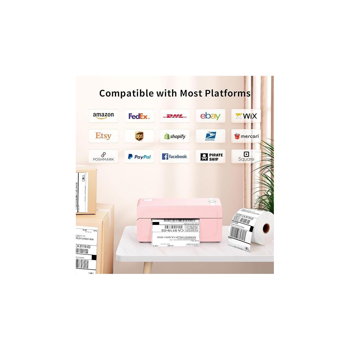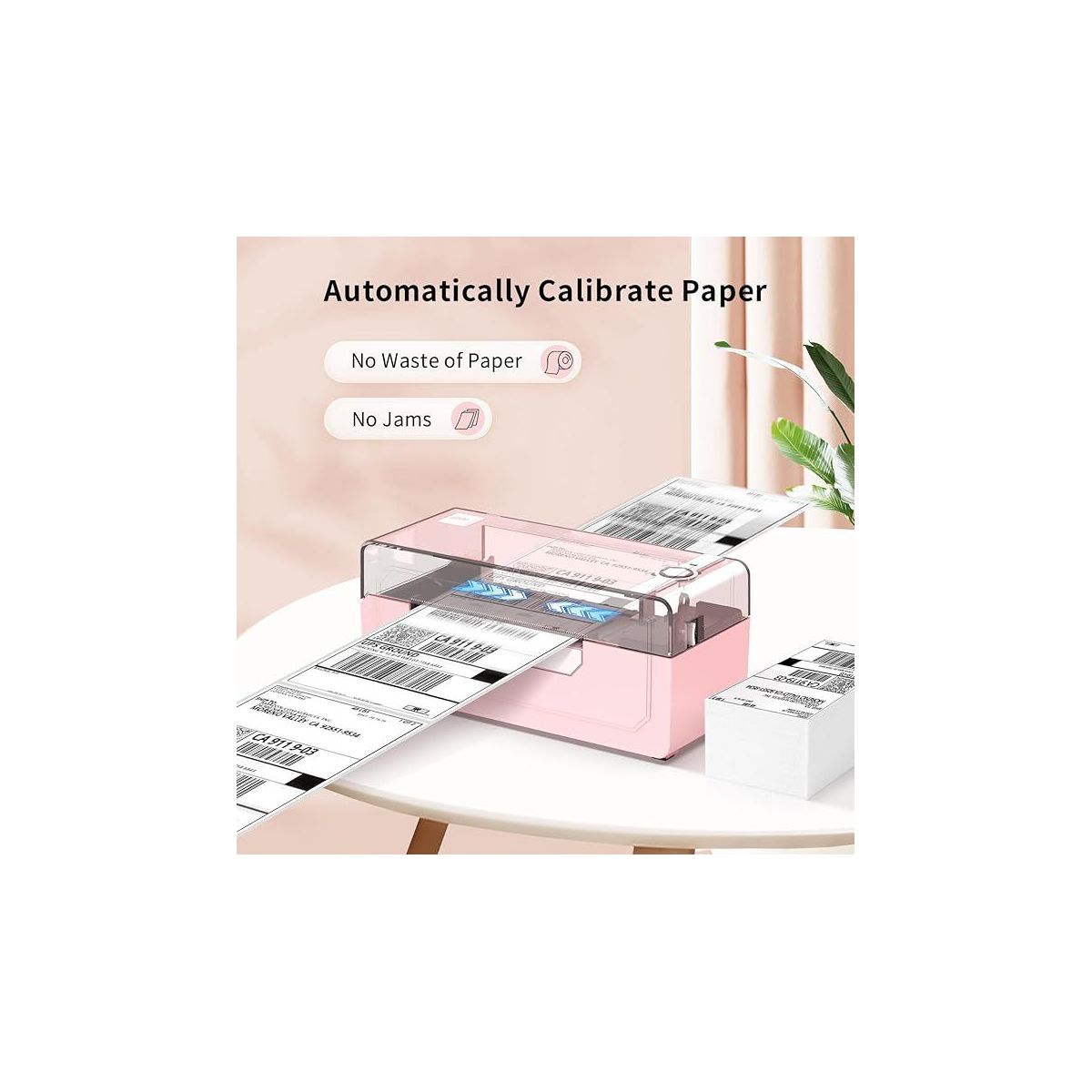 JADENS 268BT High-Speed Thermal Label Printer – Bluetooth & USB, Ink-Free & BPA-Free, 4x6 Shipping Labels (Pink)