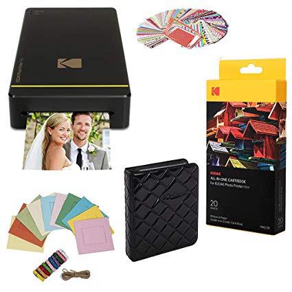 Make sure this fits by entering your model number. Starter Bundle Consists of 5 Unique Items - Printer, Paper, Case, Hanging Frames, Album, Sticker Frames EASY PRINT TECHNOLOGY – Mini Smartphone Printer Lets You Print 2.1 X 3.4” Photos Direct From Android or iOS Device; No Cables or Buttons Necessary WIRELESS CONVENIENCE – NFC One Touch for Android Launches Kodak App to Print in Seconds; Also Compatible With iPhone or iPad Via Wi-Fi Connection HIGH QUALITY PHOTOS – Innovative D2T2 Dye Transfer Method Produces Beautiful, Detailed Black/White or Color Portraits That Dry Instantly & Stay Bright Up to 10 Yrs ALL-IN-ONE CONVENIENCE – Innovative Kodak PMC Cartridges Combine Paper & Color Ink for Easy Maintenance; Purchase Refills in Increments of 20, 30 or 53