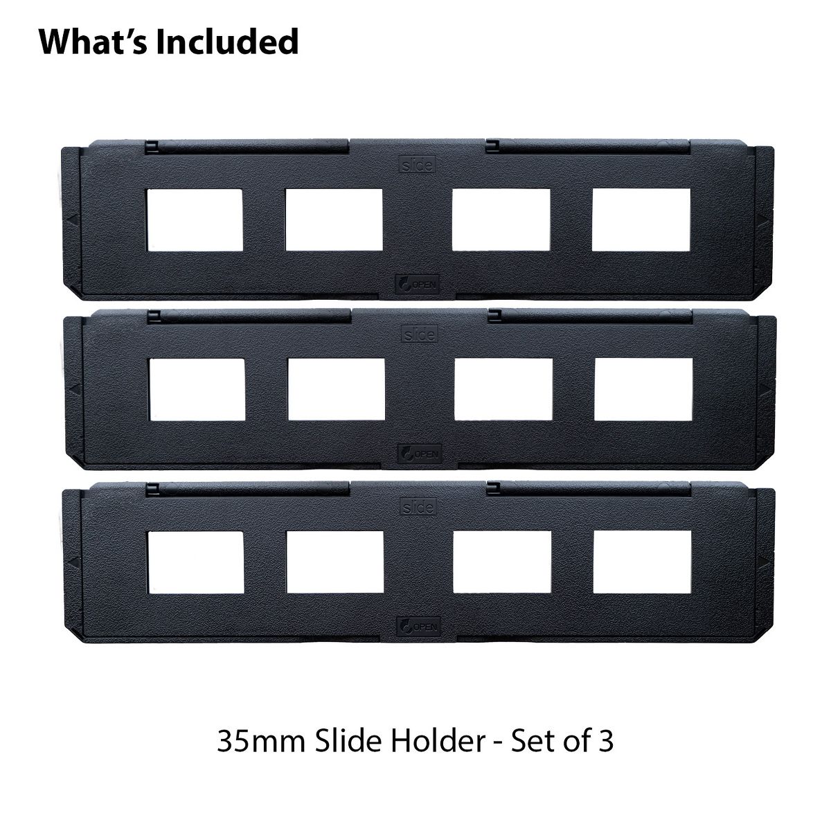 What's Included: 3x 35mm Long Slide Holders, Quick Start Guide, 1 Year Manufacturer's Warranty