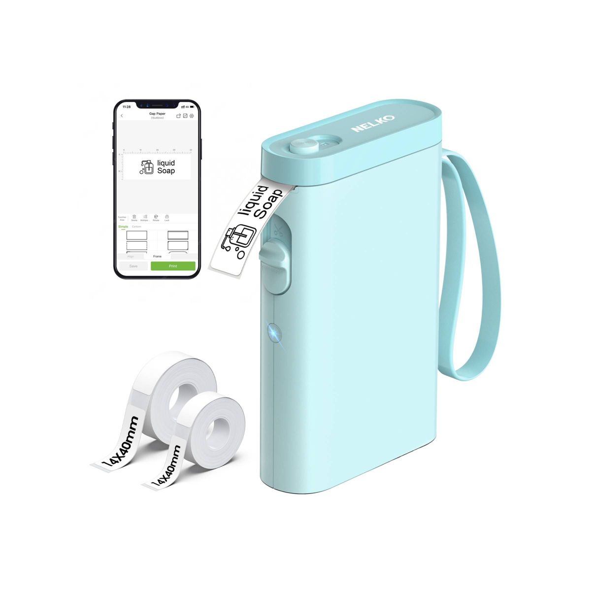 Nelko P21 Bluetooth Label Printer Sky Blue with 14x40mm 100pc Roll and 14x40mm 180pc Roll