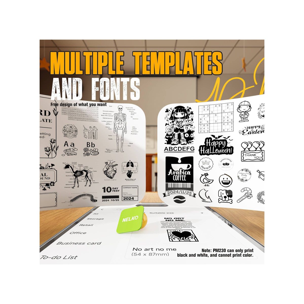 Nelko PM230 - Mini photo printer is small and designed for children. Connect the mobile phone with Bluetooth or connect the MAC system with USB, combined with a support app to customize and edit the labels. This unit boasts Intelligent identification of consumables specifications, loading and printing. This removes the manually process to confirm the size. Provide a variety of fonts, filter effects and themes to make your black and white images more high-definition with the PM230 printer. Comes with two rolls of white label.