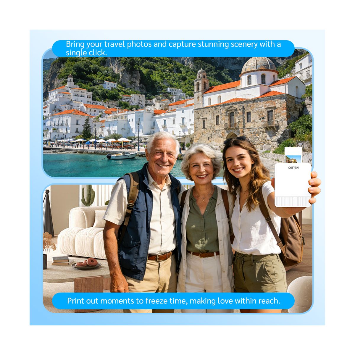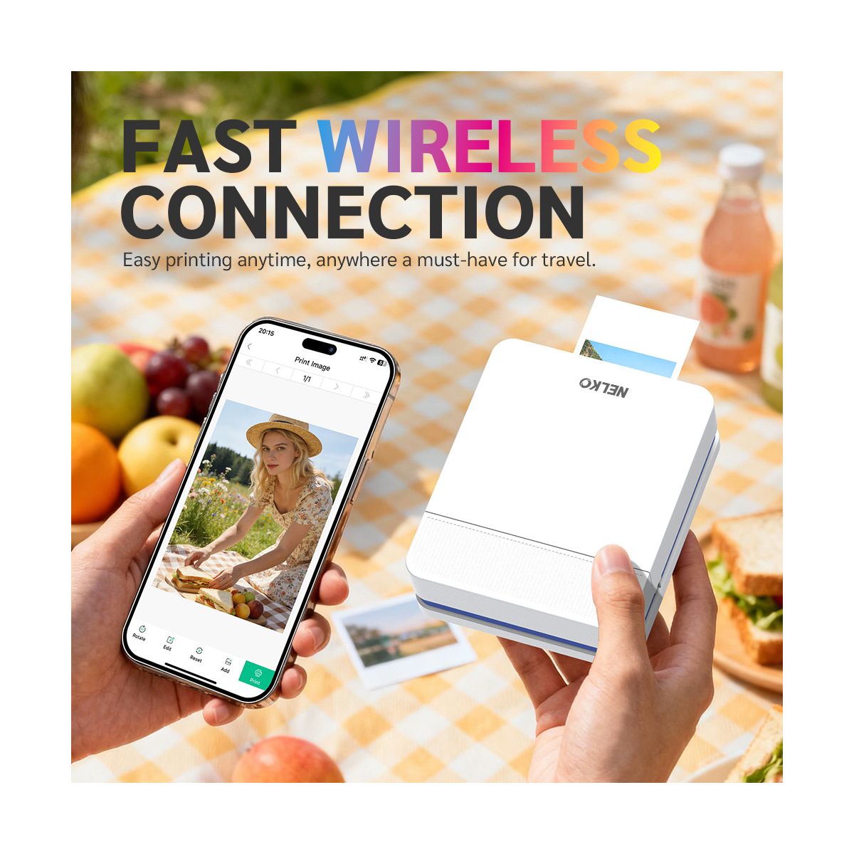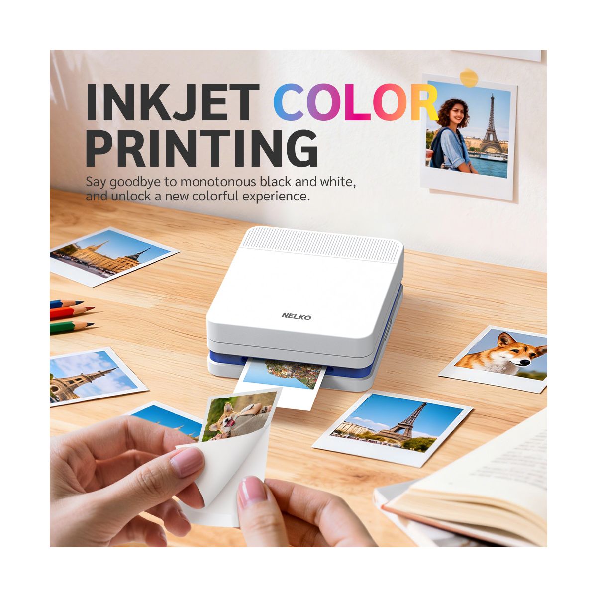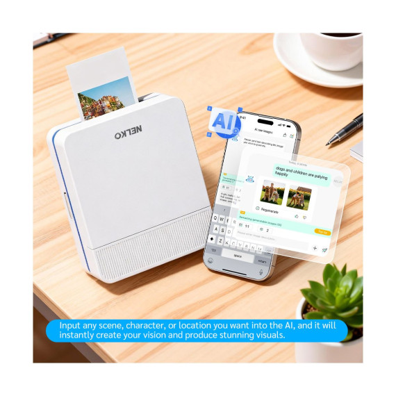 NELKO PP03 Portable Color Photo Printer – Wireless Bluetooth Mini Printer for Phone, Travel-Friendly with AI Image Generation & Built-in Editing App