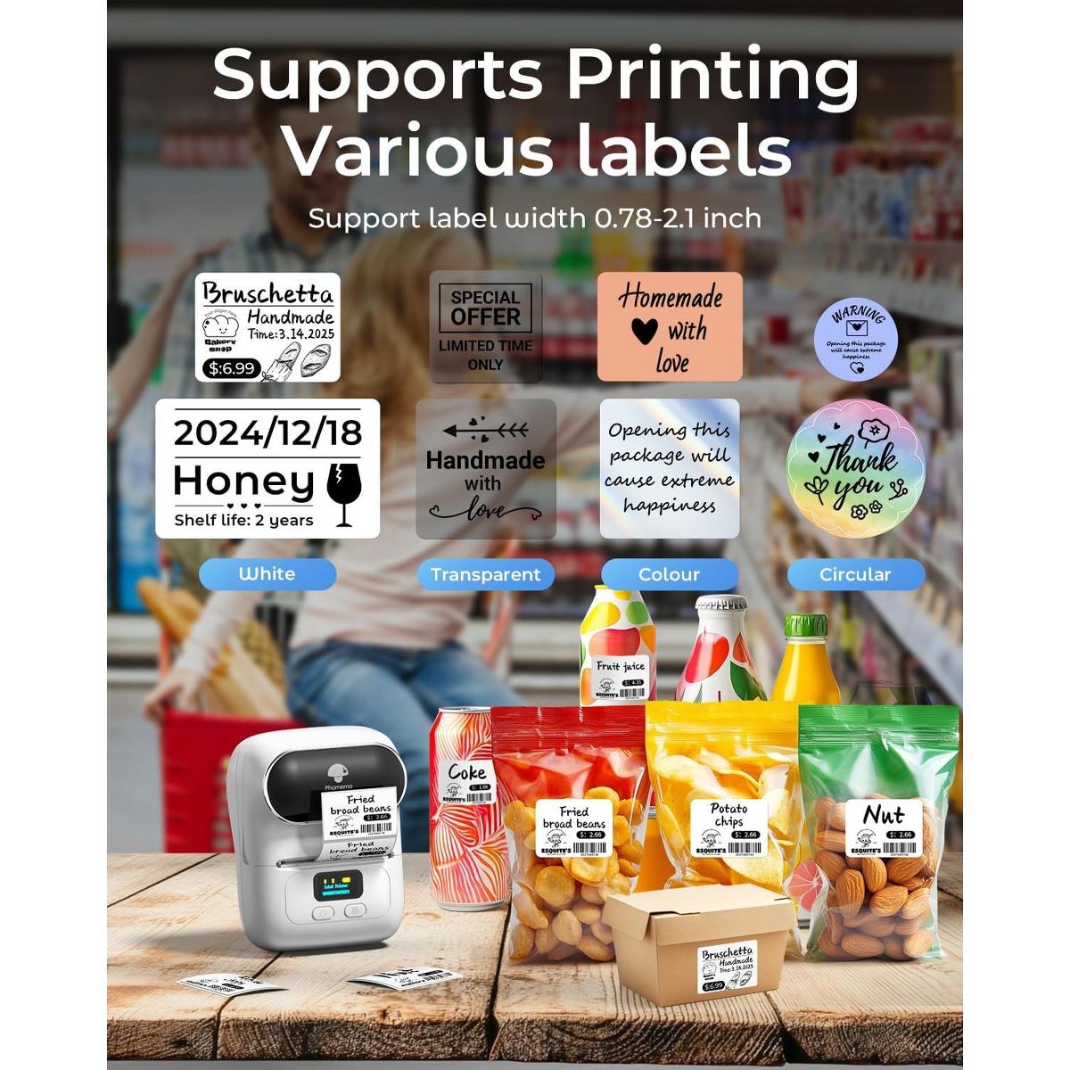 Phomemo M220 Portable Printer Label Maker for Product Label and Logo Sticker - White