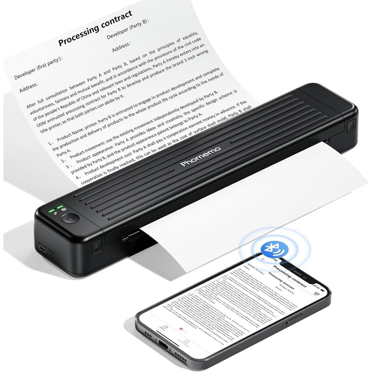 Phomemo P831 is a portable wireless printer designed for both home and travel use. With 300 DPI thermal transfer technology, the P831 lets you print everyday documents quickly and in high quality. It supports standard A4 and US Letter size paper.