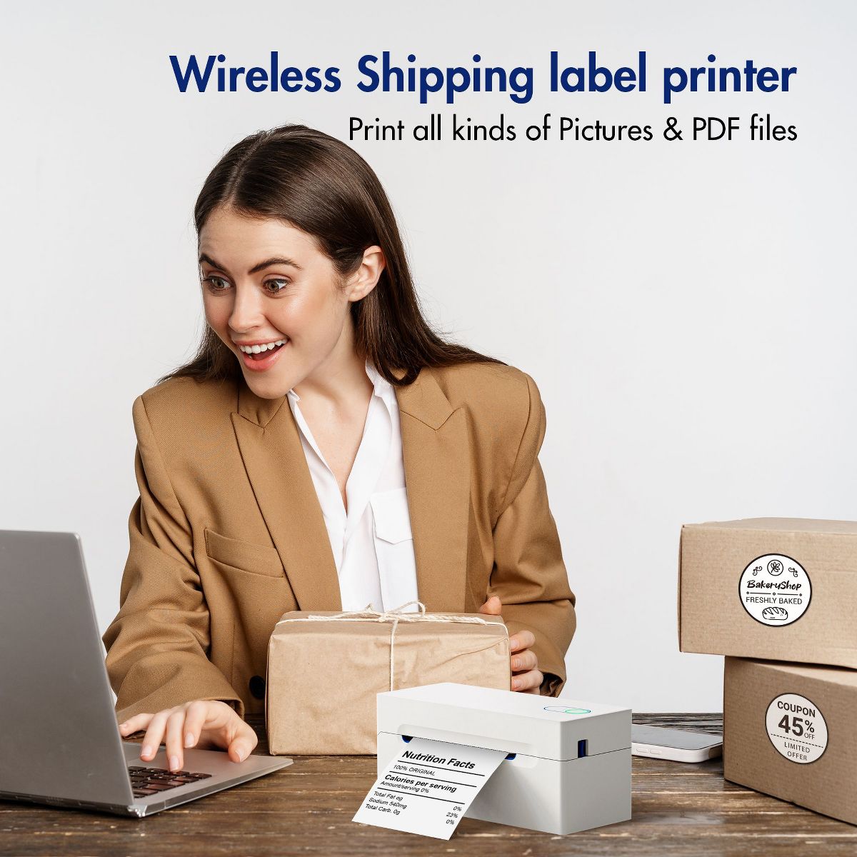 Bluetooth Thermal Shipping Label Printer, SWIFINT Wireless 4x6 Shipping Label Printer for Small Business, Support Android, iPhone, Windows, and Mac, Widely Used. Bluetooth Label Printer Supports a Faster Printing Speed of 72 PCS/Min for 4*6 Inch Shipping Labels and Delivers High Resolutio. Label printer is No ink, No toner. Thermal label printer to print shipping labels, warehouse labels, market labels and address label, helping increase your productivity. Great for your online small business for shipping packages