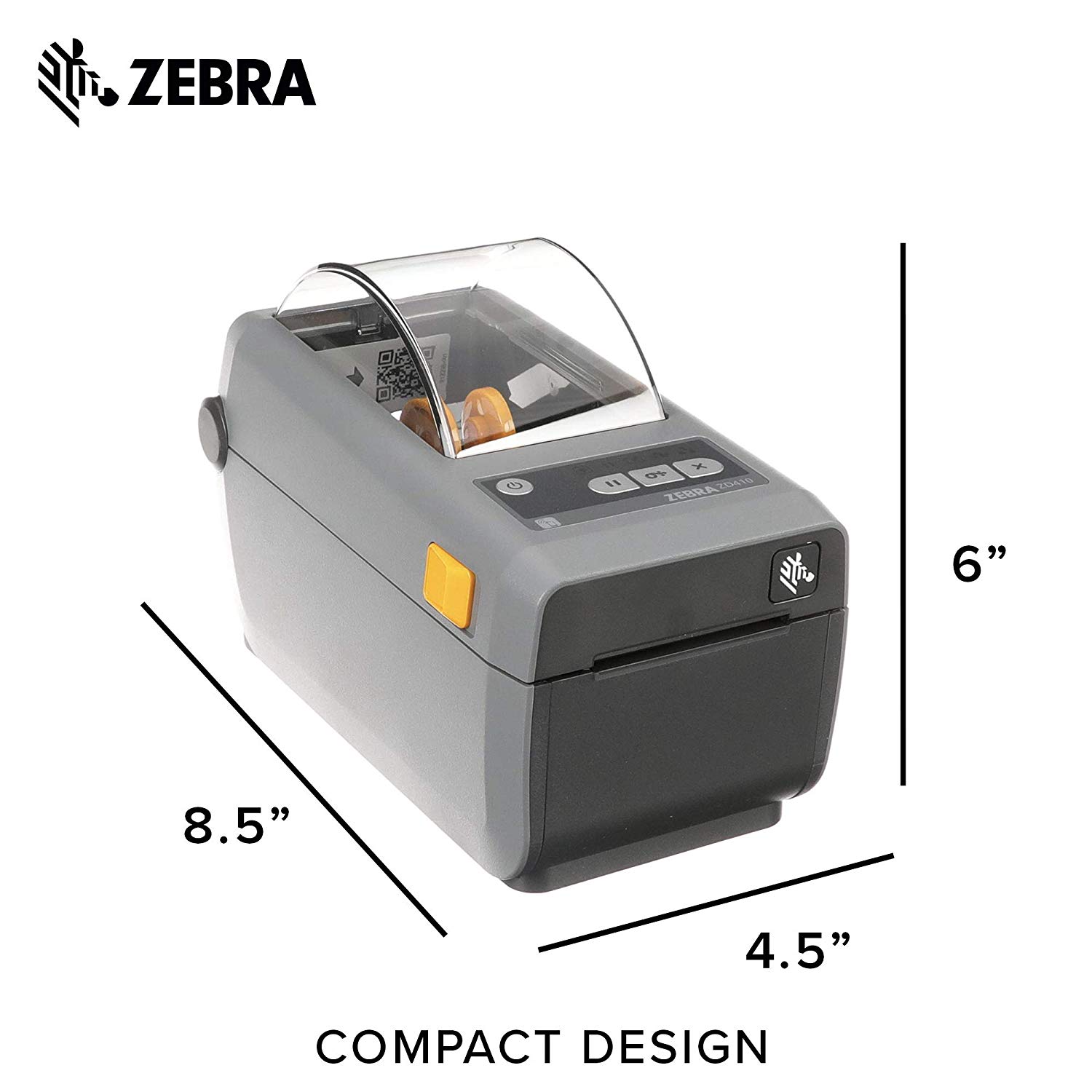 Zebra - ZD410 Wireless Direct Thermal Desktop Printer for Labels, Receipts, Barcodes, Tags, and Wrist Bands - Print Width of 2 in - USB and Bluetooth Low Energy Connectivity