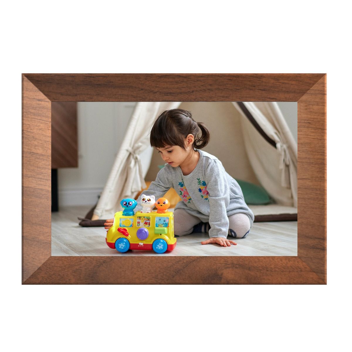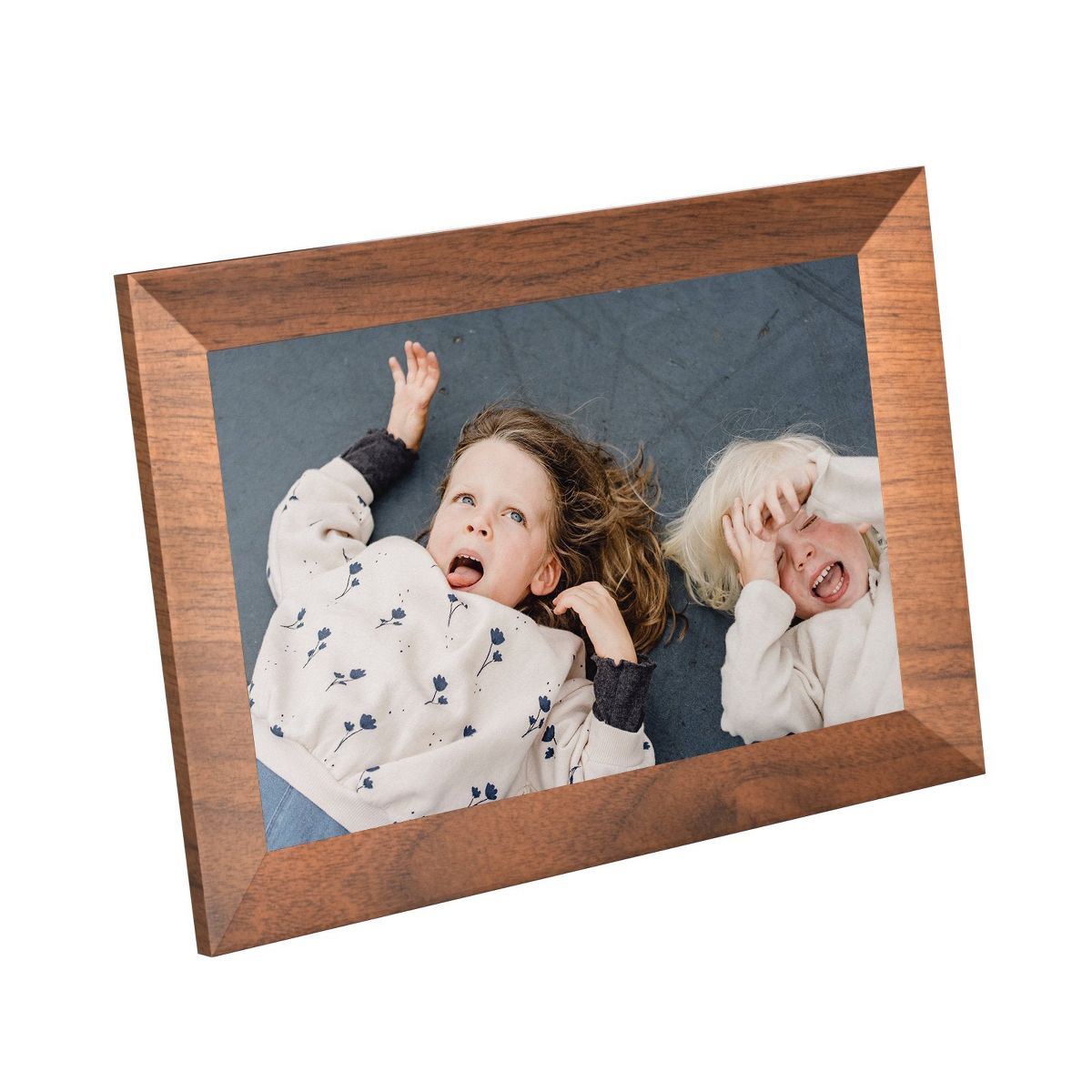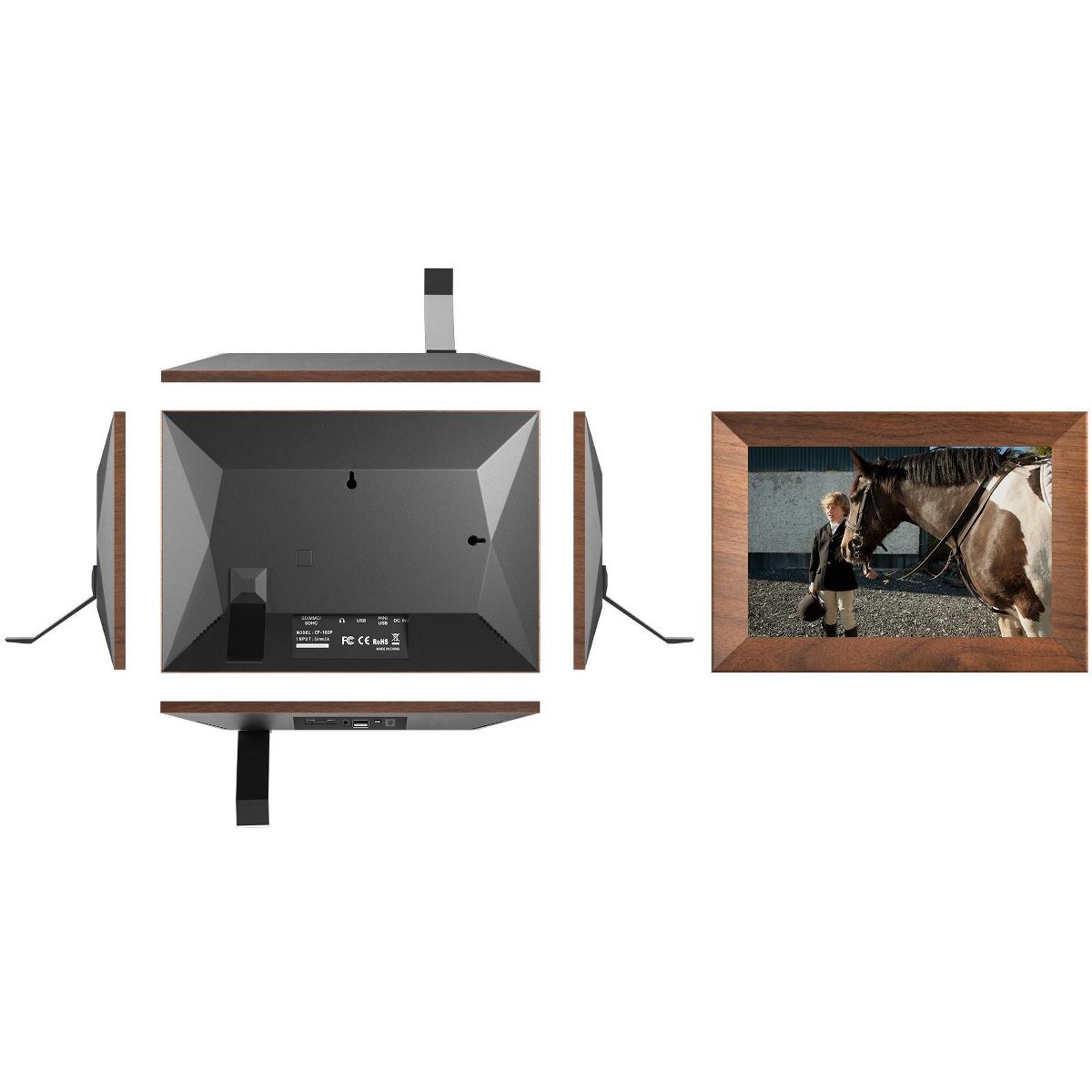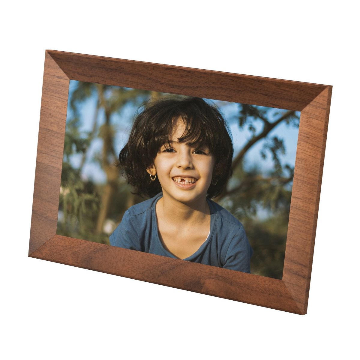 The KODAK CF102P BURLYWOOD- 10.1-inch HD digital photo frame featuring a vibrant 1280x800 IPS display for crystal-clear, wide-angle viewing. With 1GB RAM and 32GB of internal storage, it allows you to store and display thousands of photos. Encased in a durable plastic frame, it offers WiFi connectivity for easy sharing and remote photo uploads via the companion app.