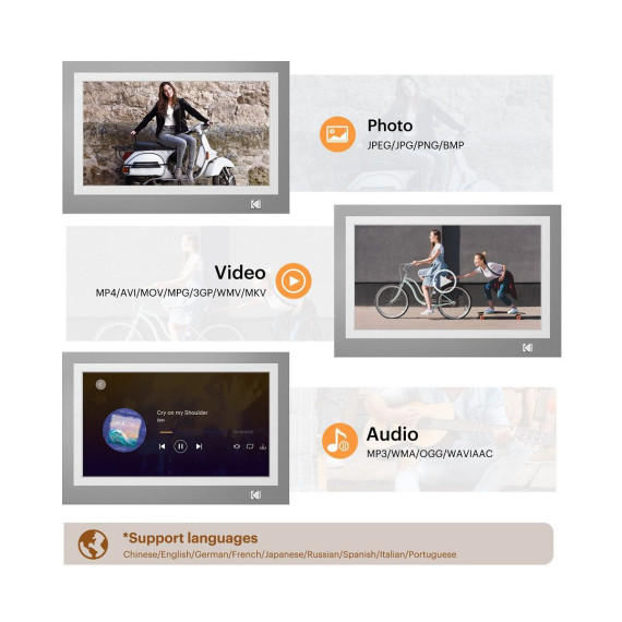 - Support: Sharing photo & video via Wi-Fi with App. Support weather and update on line. Operation: 1-key switch and Touch panel
