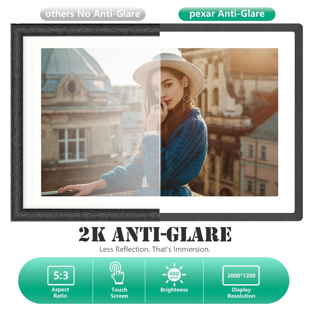 Pexar by Lexar 11″ Wi-Fi Digital Photo Frame | 2K Anti-Glare Touchscreen | Stunning Display, Perfect for Gifting