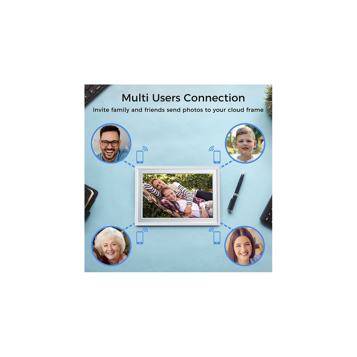A Cloud Digital Frame is a great gift for sharing memories with family, friends and especially parents and grandparents. The elegant design will look great anywhere in the home and with auto-rotation, you can have photos displayed horizontal or vertical. Sharing photos is simple, fun and easy - just snap photos on your phone, and then use the APP (available on iOS and Android) to share to the Cloud Frame fast, simple and anytime no matter where you are. Get the whole family to participate in sharing photos by inviting them to the cloud frame account and letting them create albums and share their pictures to the photo frame. You also have full control of your slideshow settings, transitions as well as special features like weather and time displays. Besides using your phone, it also works with a computer browser to send photos as well. Additionally, there are non-WiFi options so you can view photos using the 16GB storage, SD/SDHC card slot or USB Drive. Setting up and connecting your cloud frame to your WiFi is quick and easy using the touch screen and registration can be completed via Frame, APP or website within minutes. If you want the best way to view and share photos for yourself, friends or family, the cloud frame is the product you have been looking for.