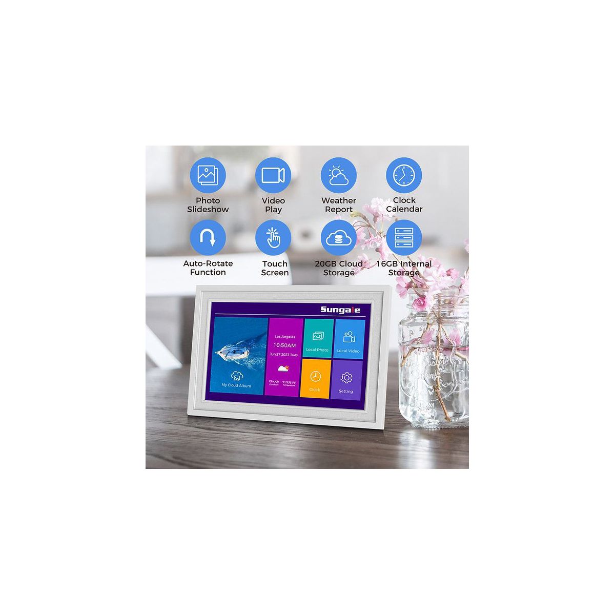 Sungale 10 inch WiFi Cloud Photo Frame- Free 20GB Cloud Storage, Auto-Rotate, Easy PhotoShare APP for iPhone/Android - Black