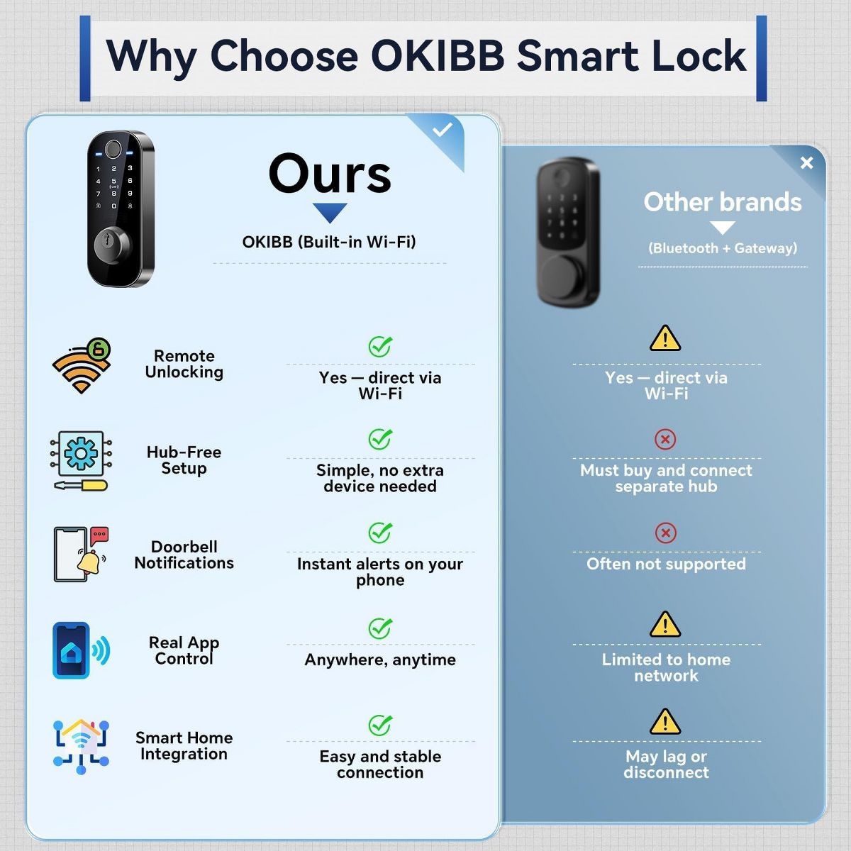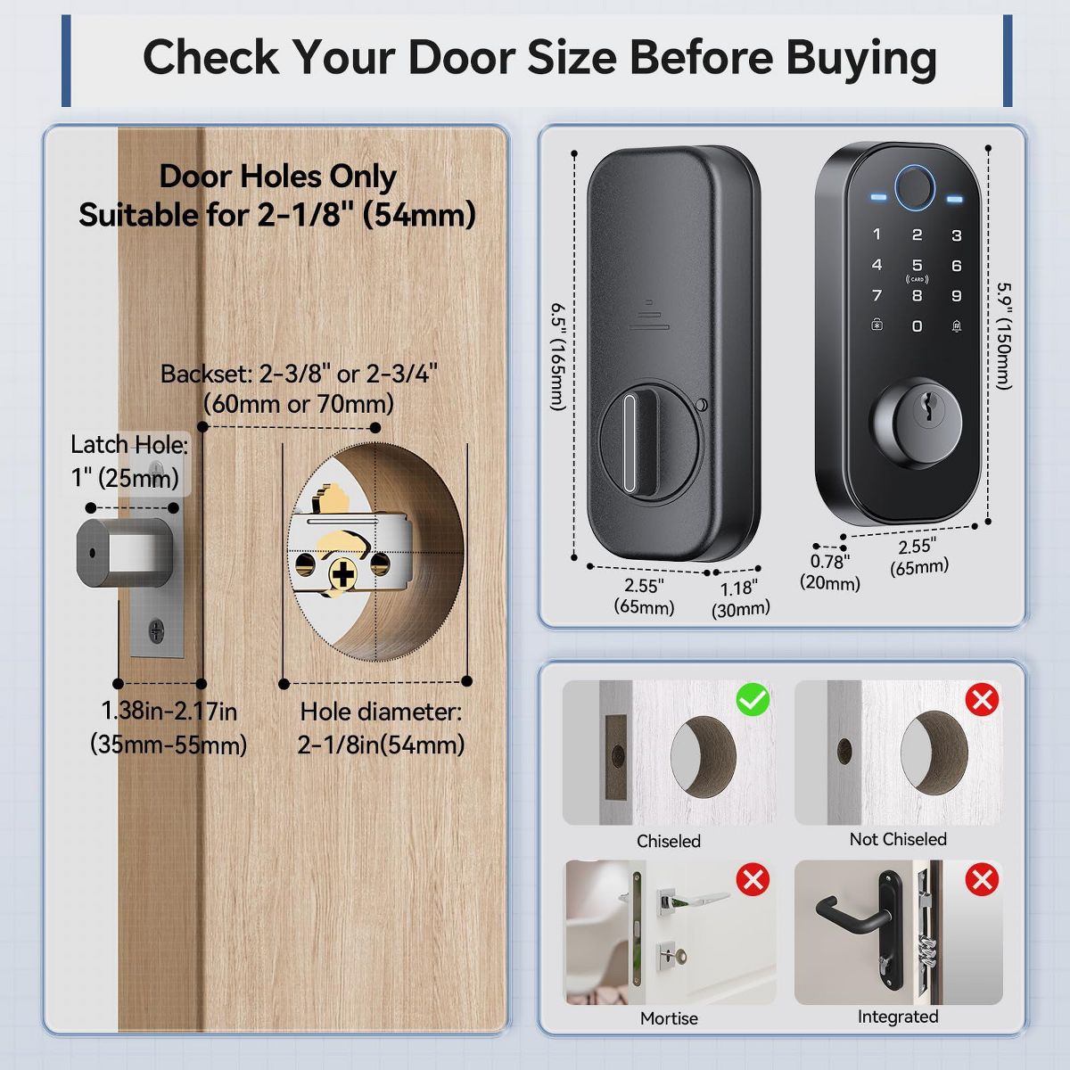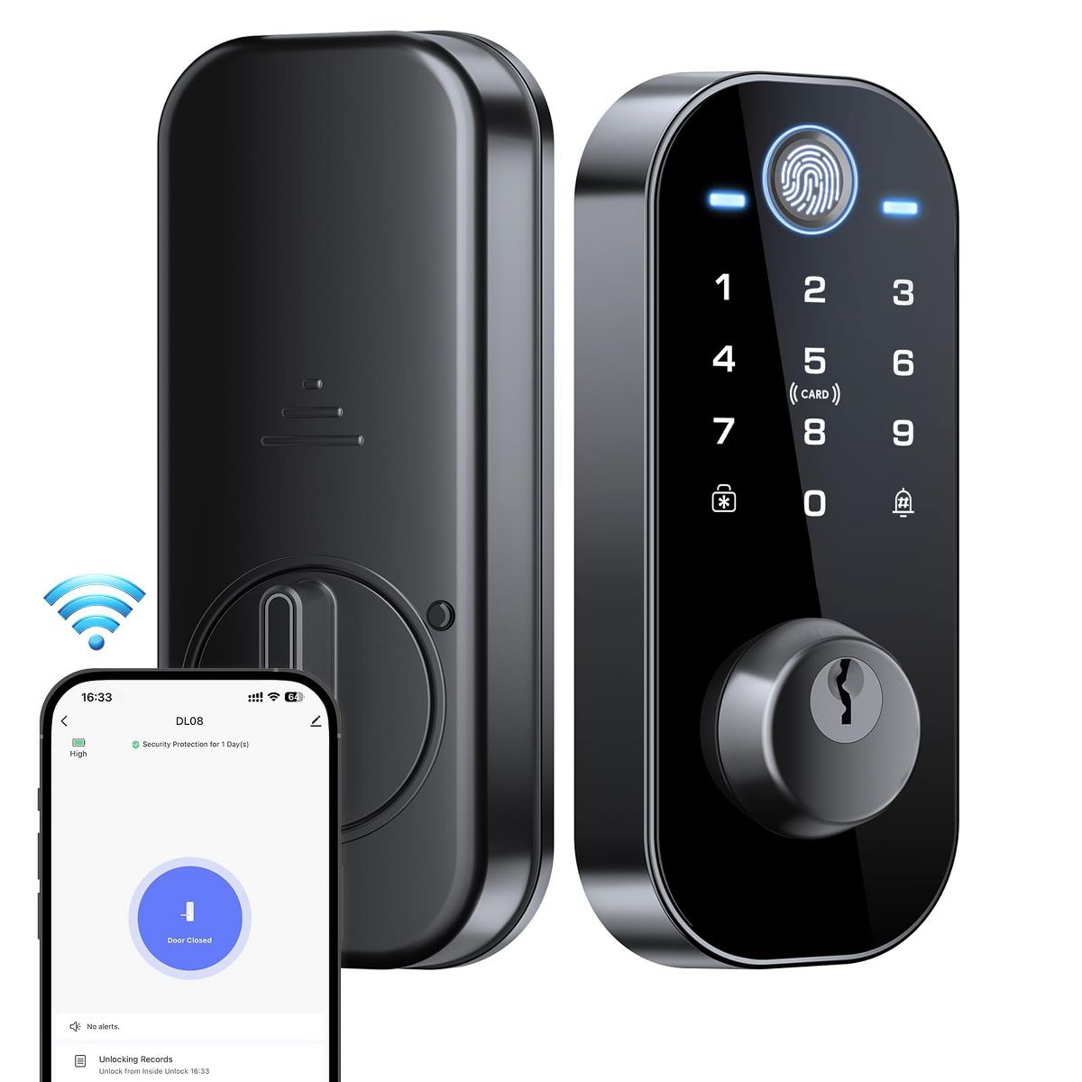Itopfox Keyless Entry Smart Lock with Built-in WiFi, Fingerprint/Passcode/Fob/Key Unlock, APP Remote Control, Auto Lock & One Touch Lock