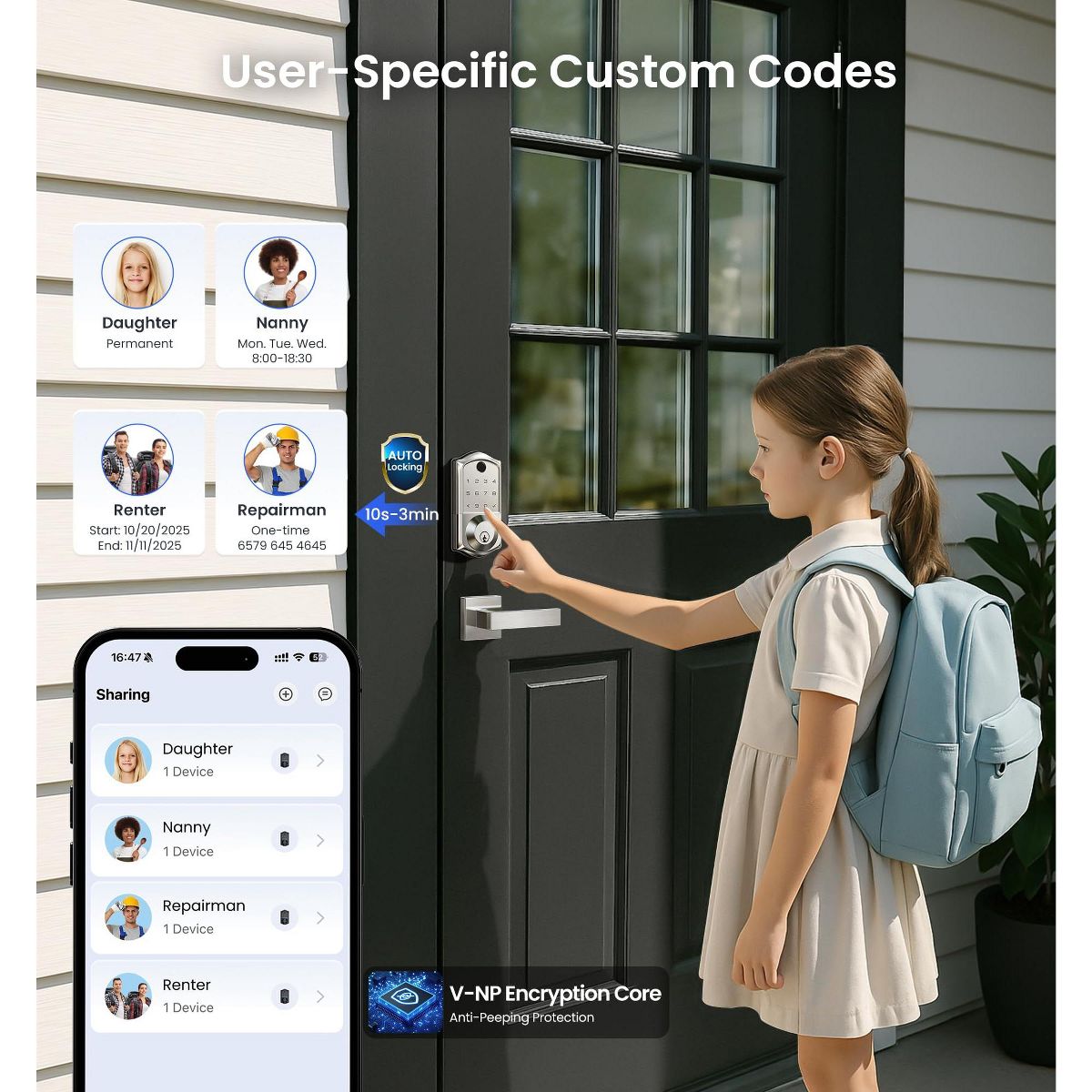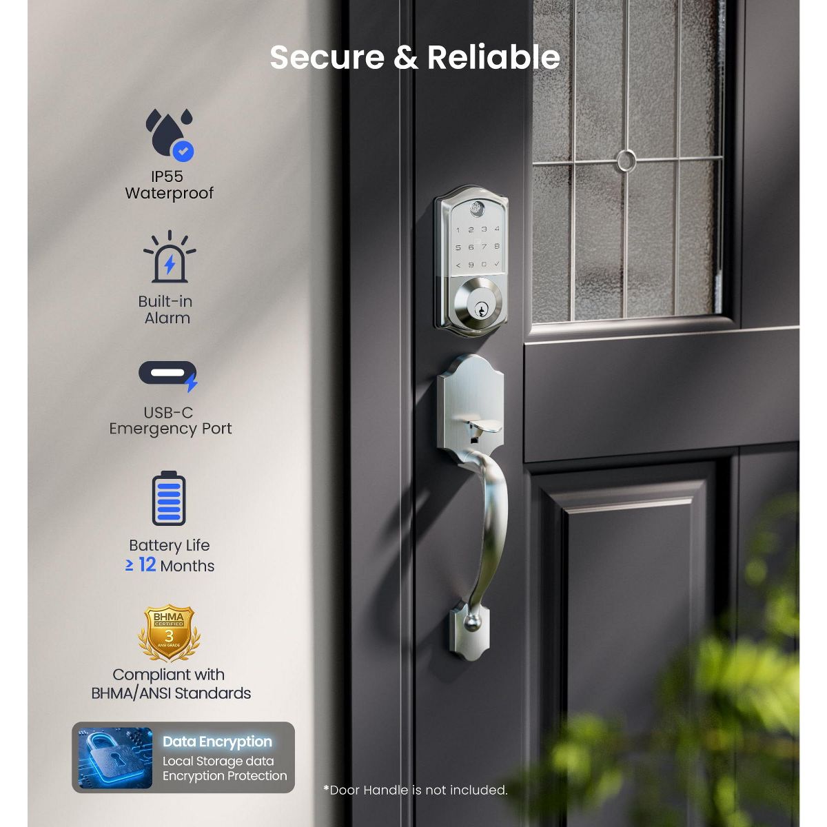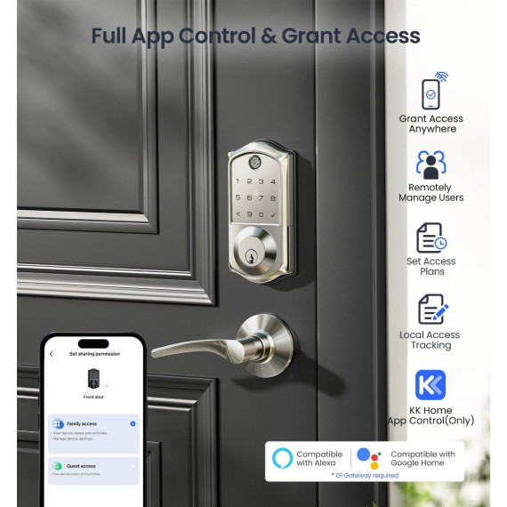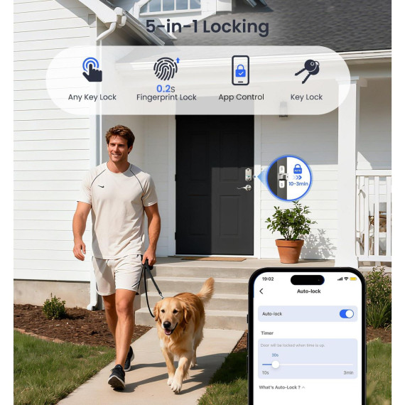 Upgrade your home security with this smart door lock. It features 7 - in - 1 smart access, allowing you to unlock via fingerprint, app, RFID card, and more. With 5 locking methods, it offers great versatility. Smart user management lets you remotely authorize users and view access logs, perfect for multi - tenant properties. It meets high - end security standards and can withstand extreme temperatures. Integrate it with your smart home system for voice control and real - time monitoring. The lock is easy to install, auto - detecting door handedness and requiring only a screwdriver for setup. Say goodbye to keys and hello to a more convenient and secure home life.
