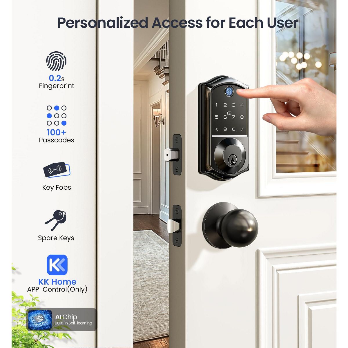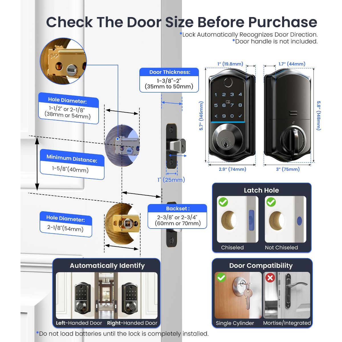 Itopfox Smart Fingerprint Door Lock with App Control, 7-in-1 Keyless Entry, Auto Lock, Emergency Power Port, Touchscreen Keypad, Biometric Lock
