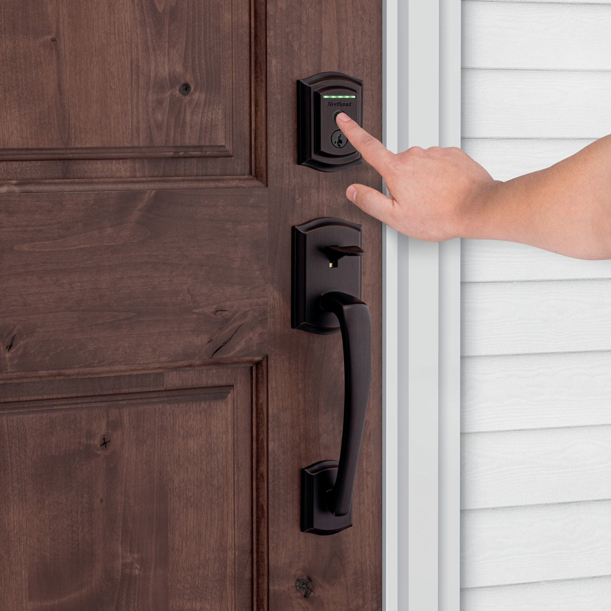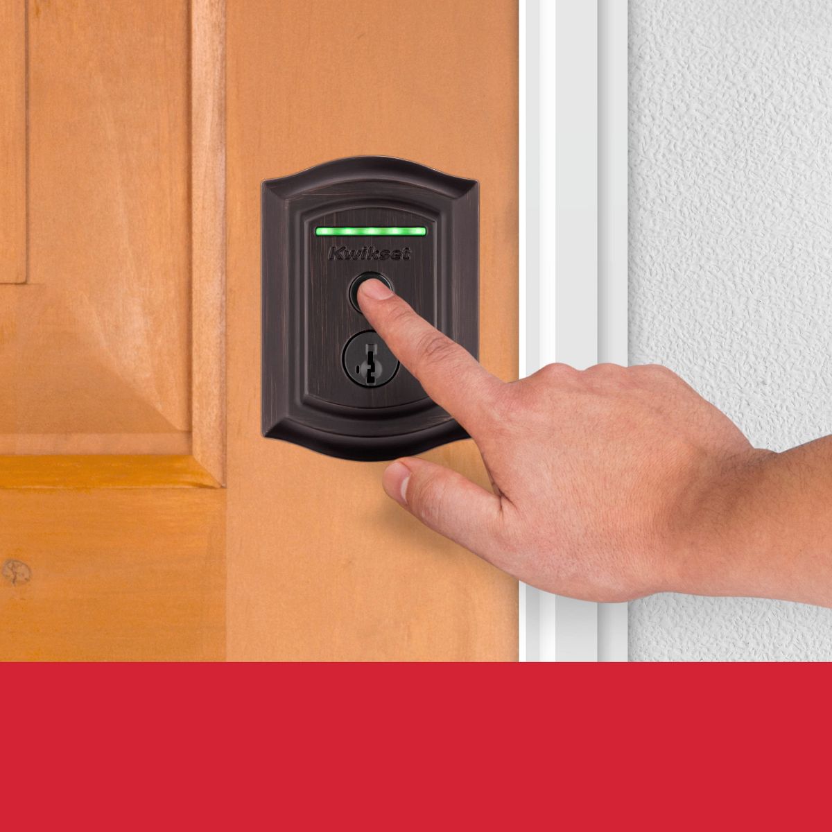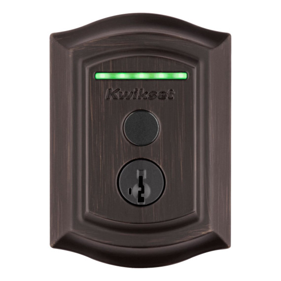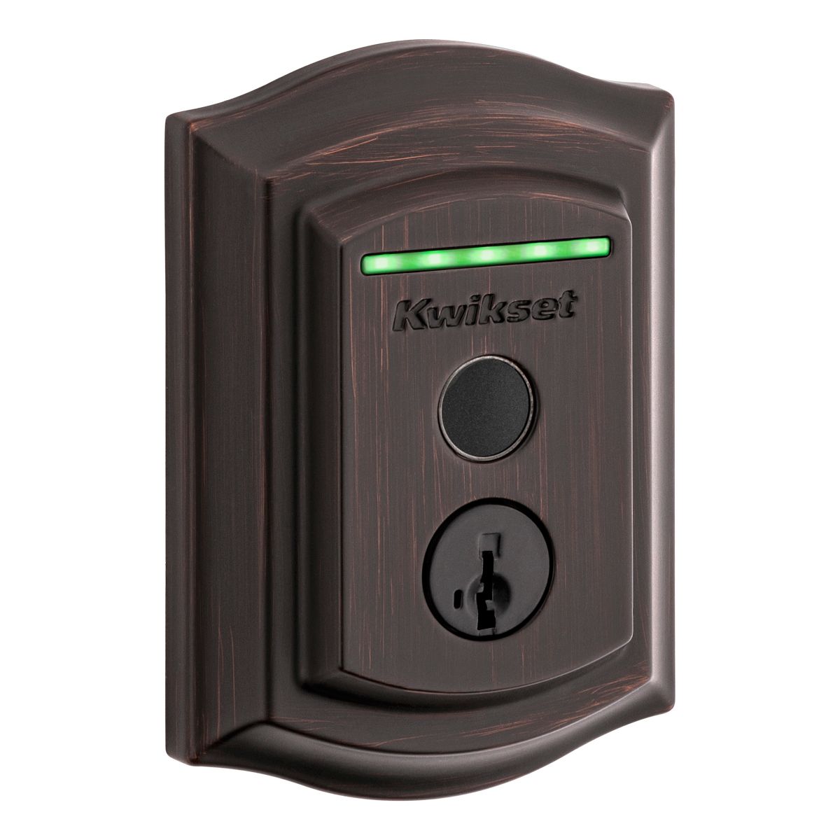 The Halo Touch fingerprint smart lock allows you to simply use your unique fingerprint to lock and unlock your door. Halo Touch has Wi-Fi built-in that connects directly to your home Wi-Fi network and smartphone for a secure smart home that does not require a third-party smart home hub, panel or subscription. With up to 100 fingerprints (50 users), you can give access to your family and friends with their unique fingerprints and manage access through the Kwikset app. You can also lock and check the status of Halo using voice commands with smart home assistants. This single-cylinder deadbolt can be locked or unlocked by using your fingerprint or key from the outside as well as the turn button from the inside.