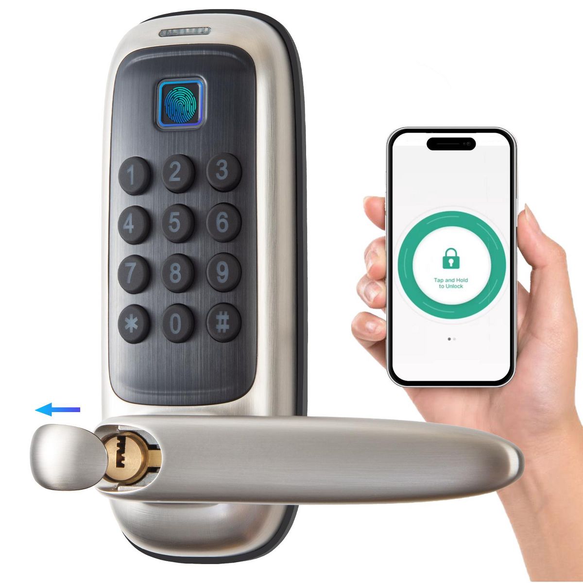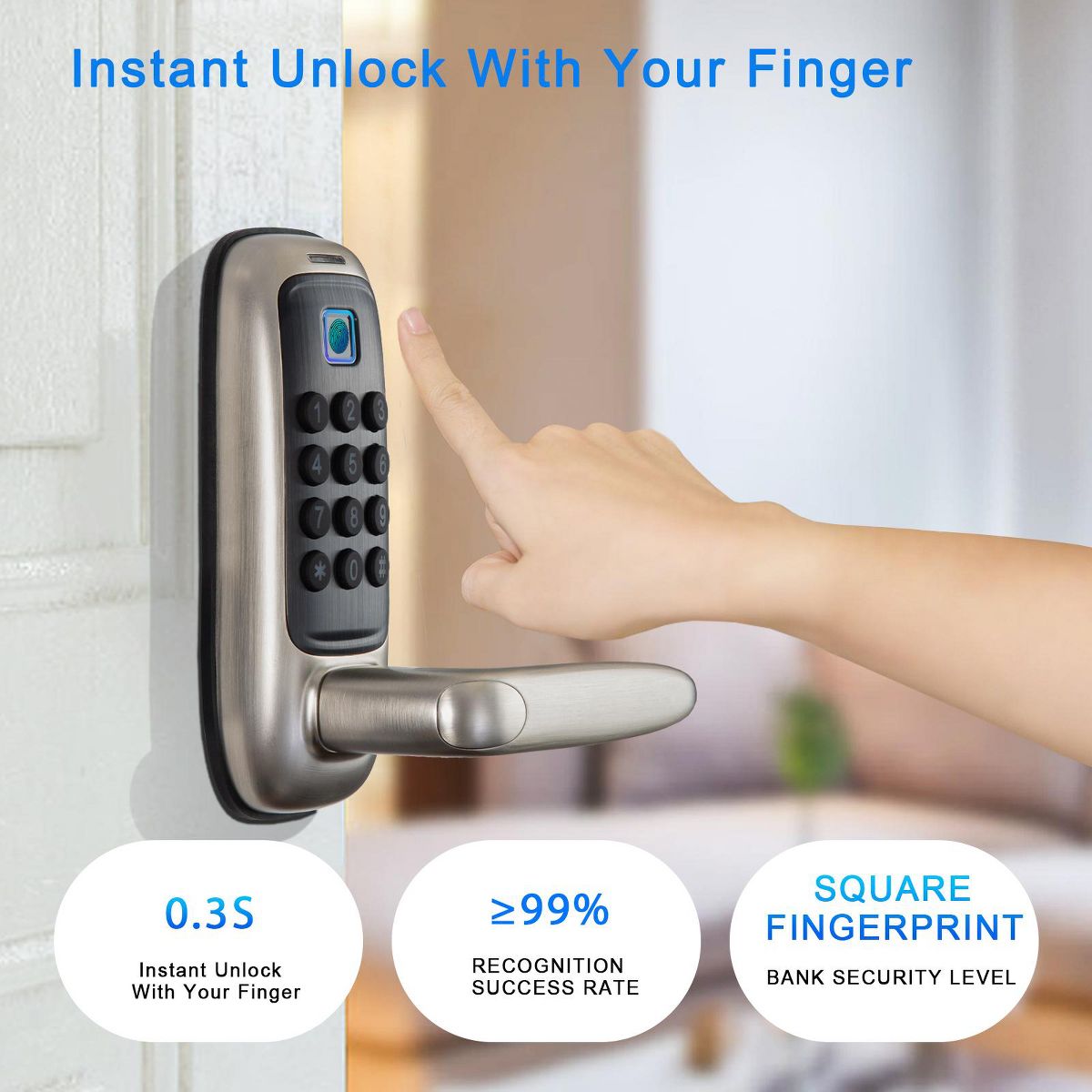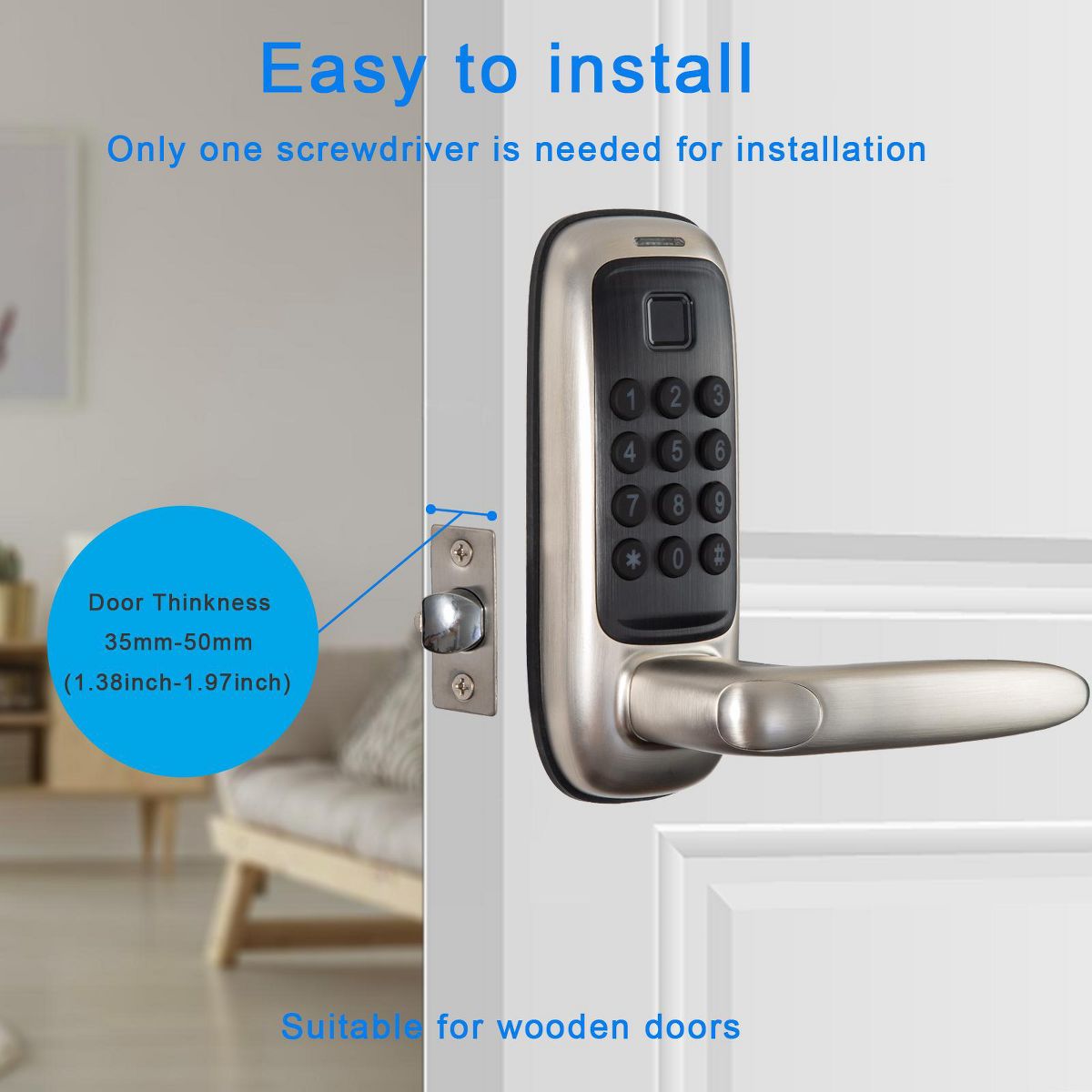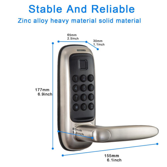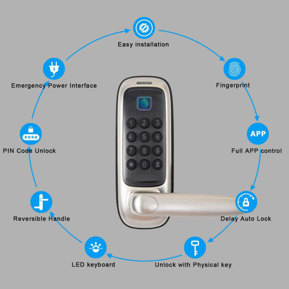 ZACHVO Keyless Smart Lock with Handle Fingerprint PIN App and Key Access Tuya Remote Control IP56 Waterproof ANSI Certified