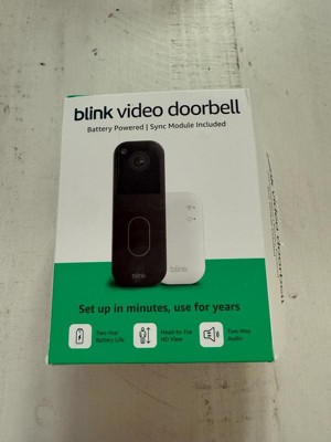 Easily install Blink Video Doorbell wire-free or connect to existing doorbell wiring. Once paired with your Blink Sync Module, enjoy up to two years of powerful battery life, so you can always know who's there. Our second-generation Video Doorbell provides a 150° head-to-toe field of view, allowing you to greet guests and watch packages get delivered in a 1:1 aspect ratio, day and night, with HD infrared night vision. In the box: Includes one Video Doorbell with three AA Energizer lithium batteries and a mounting kit (including screws and anchors). Required Sync Module (sold separately) not included.