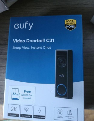 eufy C31 Smart Wi-Fi 2K Wired or Wireless Video Doorbell with 24/7 Recording and No Monthly Fees