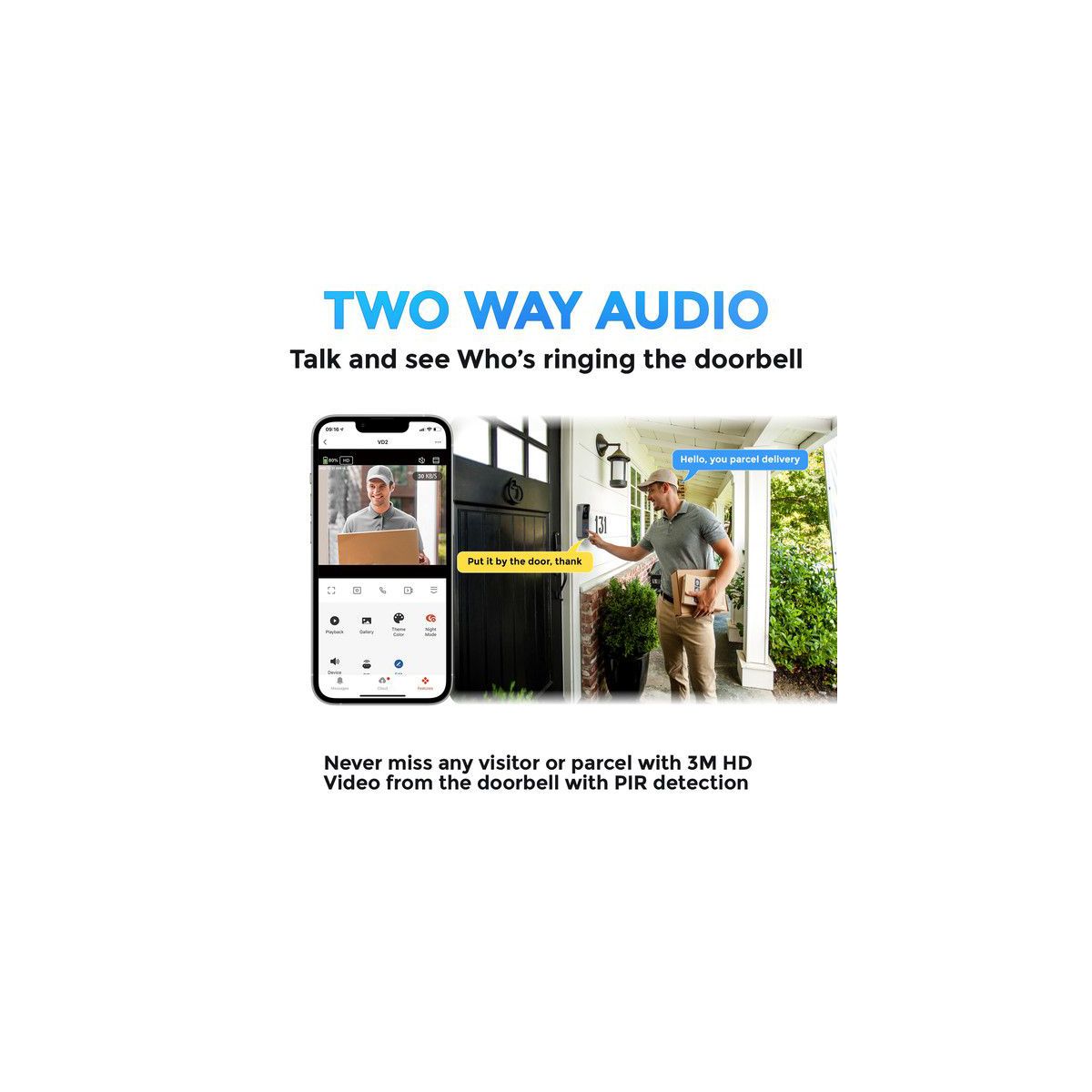 XODO VD2 Wireless Video Doorbell with Chime, 2K 3MP FHD WiFi Camera, PIR Motion Detection, 2-Way Audio, Night Vision, IP65, Alexa & Google