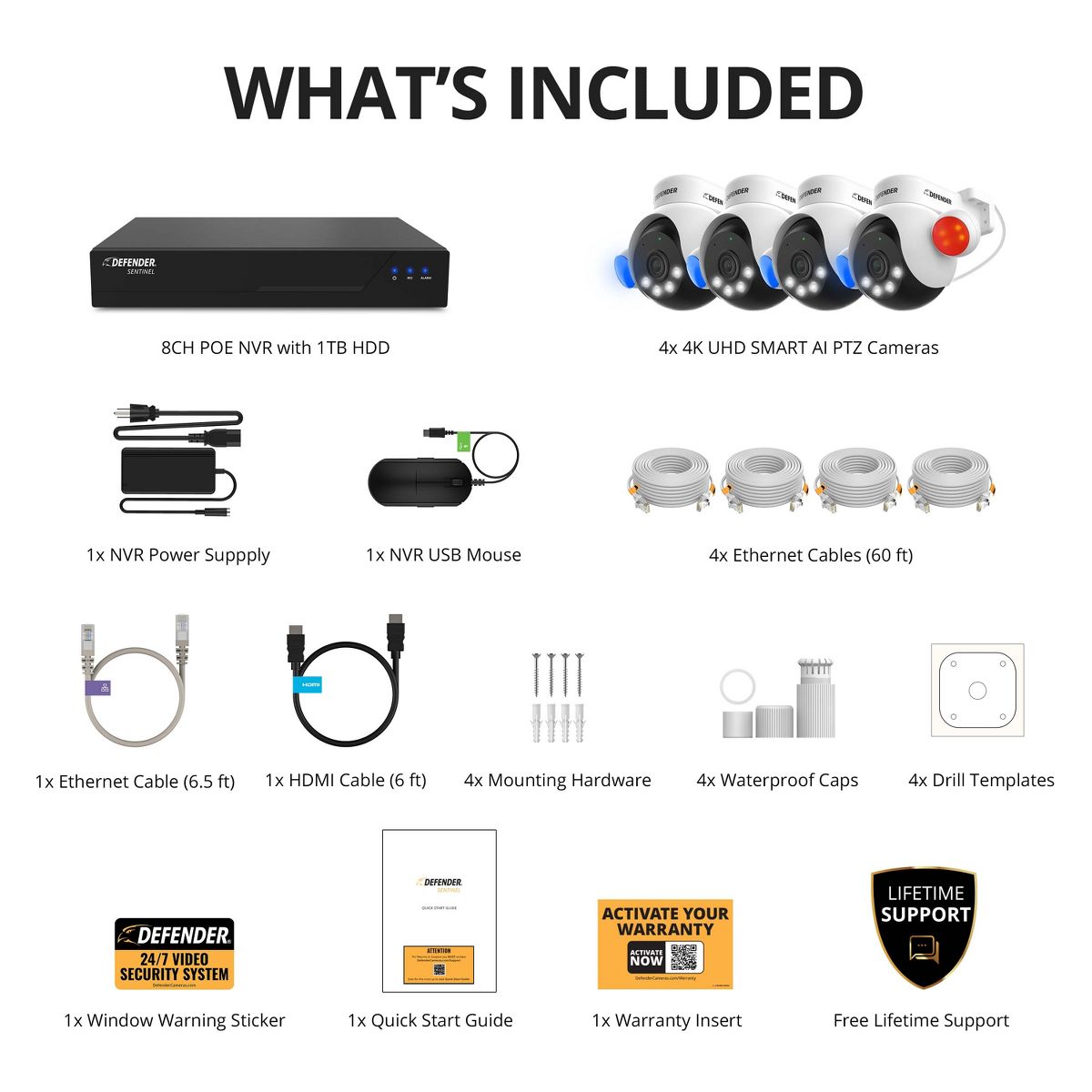 AI Powered Sentinel 4K PTZ Wired 8 Channel PoE NVR Security System, 4 Cameras, 1TB HDD