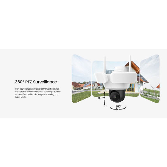 The hardwired Floodlight Cam Pro from aosu is your bright eyes for day and night. The 3K, 5.0-MP Wi-Fi® camera features continuous 24/7 recording so you can experience full-color recording in any weather (IP65 rated), day or night. When detecting intruders in low-light or at night, the system will activate the intense, 2,600-lumen floodlights and sound a 105-dB siren while sending instant notifications via app. 3 PIR sensors detect movement beyond sight, automatically adjusting the lens for reliable tracking in a wide 270° range. Pan 360°, tilt 90°, and digitally zoom 6x via app for comprehensive surveillance coverage. Built-in AI identifies and tracks humans, vehicles, and pets, ensuring no blind spots. 2-way audio lets you chat effortlessly with visitors via app. It can also transform a female user’s voice into a male one for added privacy. The 2.4-GHz Wi-Fi® camera supports up to a 128-GB microSD™ Card (not included) for on-board recording or you can set up an optional Cloud storage subscription plan. _