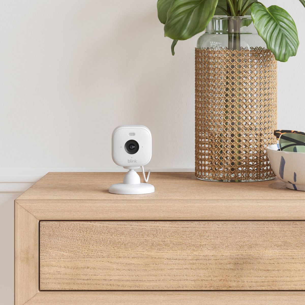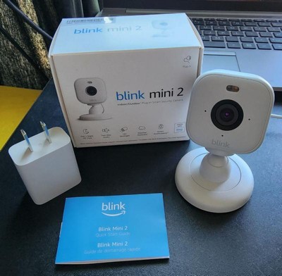 Mini smart security just got mightier. Introducing our next generation compact plug-in camera. See more with a wider field of view and night view in color with a built-in spotlight. Bring peace of mind home with Mini 2. Day or night, rain or shine. Mini 2 can be used outdoors with the purchase of a Blink Weather Resistant Power Adapter (sold separately). The built-in LED spotlight enables night view in color for enhanced visibility. In the box: Includes 2 Blink Mini cameras, 2 stands, 4 mounting screws, 2 USB-C cables, 2 indoor power adapters