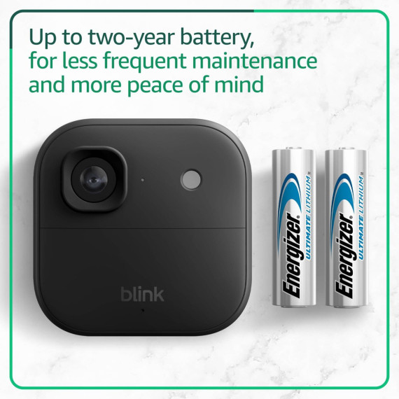See and hear more — better than ever. Battery-powered Outdoor 2K+ delivers sharp 2K video resolution, detailed 4x digital zoom, and crystal-clear two-way audio with advanced noise cancellation. Mount in minutes with no wires, no worries, no compromises. Includes two Blink Outdoor 2K+ cameras, one Blink Sync Module Core, four AA 1.5V lithium Energizer batteries, two mounting kits, one power adapter (for Sync Module Core), and one USB-C cable (for Sync Module Core).