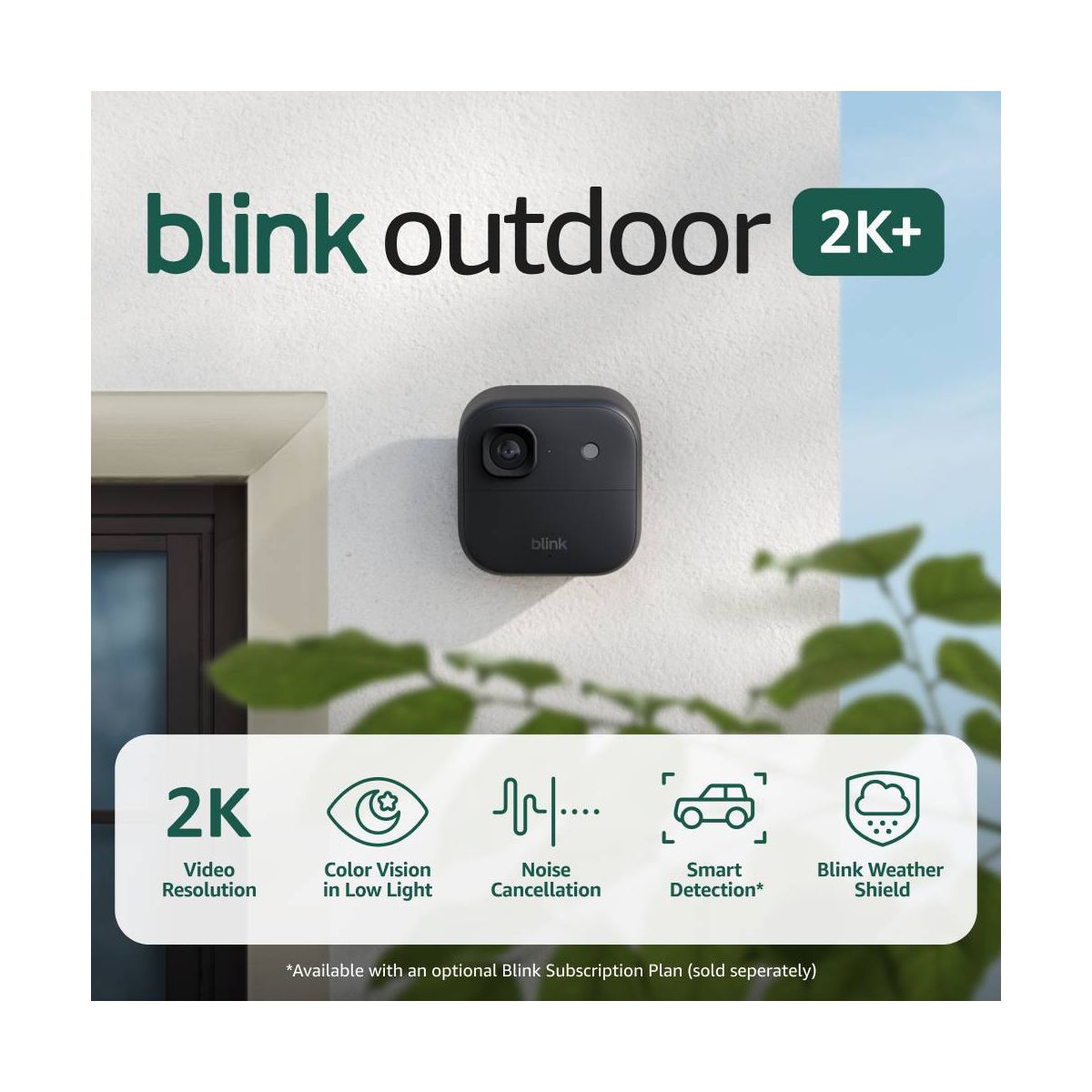 See and hear more — better than ever. Battery-powered Outdoor 2K+ delivers sharp 2K video resolution, detailed 4x digital zoom, and crystal-clear two-way audio with advanced noise cancellation. Mount in minutes with no wires, no worries, no compromises. Includes three Blink Outdoor 2K+ cameras, one Blink Sync Module Core, six AA 1.5V lithium Energizer batteries, three mounting kits, one power adapter (for Sync Module Core), and one USB-C cable (for Sync Module Core).