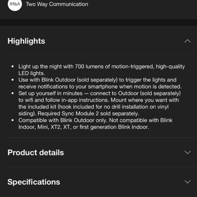 Use with Blink Outdoor (sold separately) to trigger the lights and receive notifications to your smartphone when motion is detected.